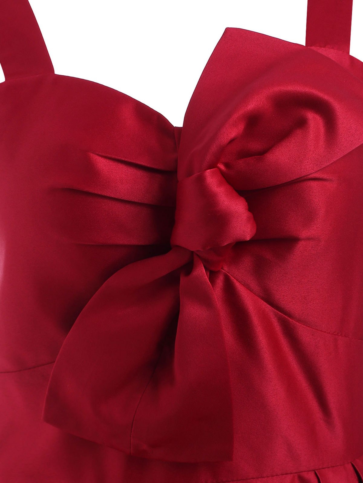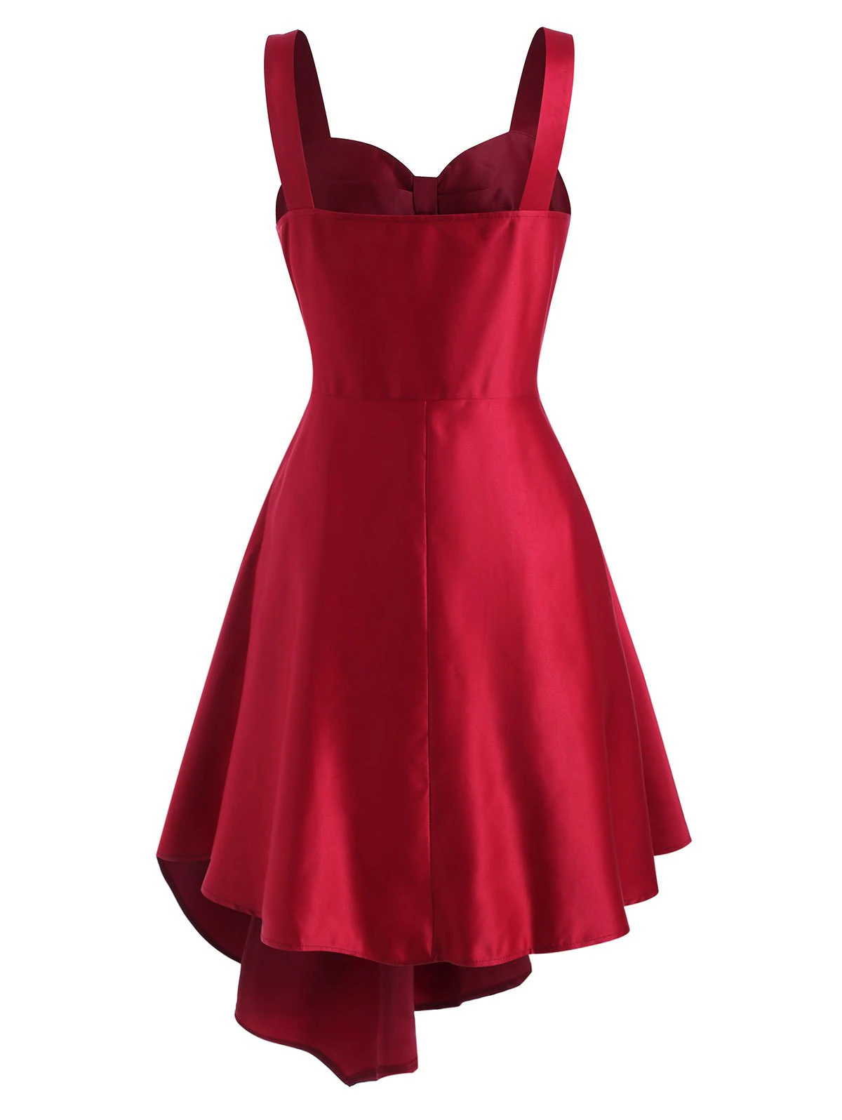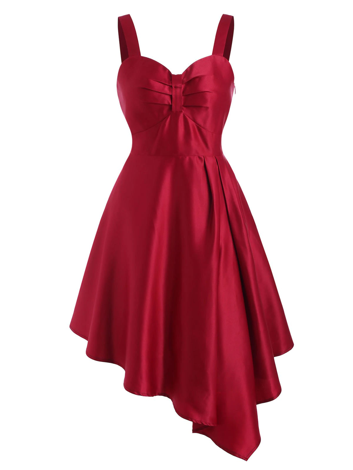 Stun everyone with this asymmetrical dress which catches eyes with its sweet bowknot accent, and the bowknot can be detached if you want low-key. And the ruched accent fills the weak spots of lacking bowknot.
