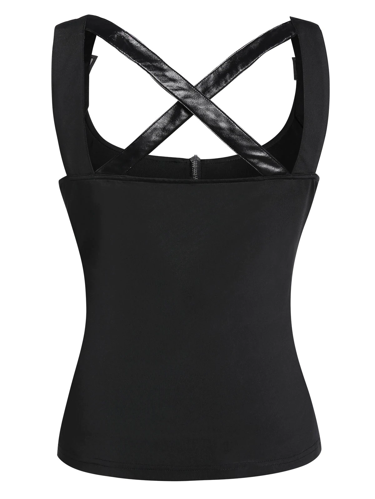 Buckle Strap Zip Up Cut Out Gothic Tank Top