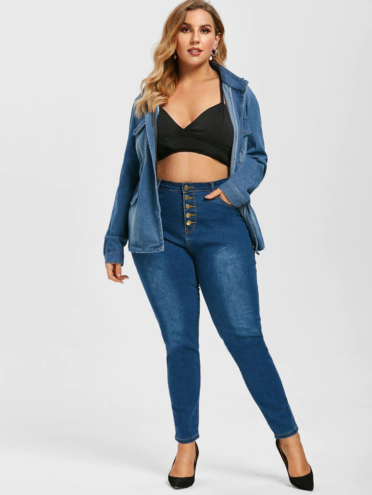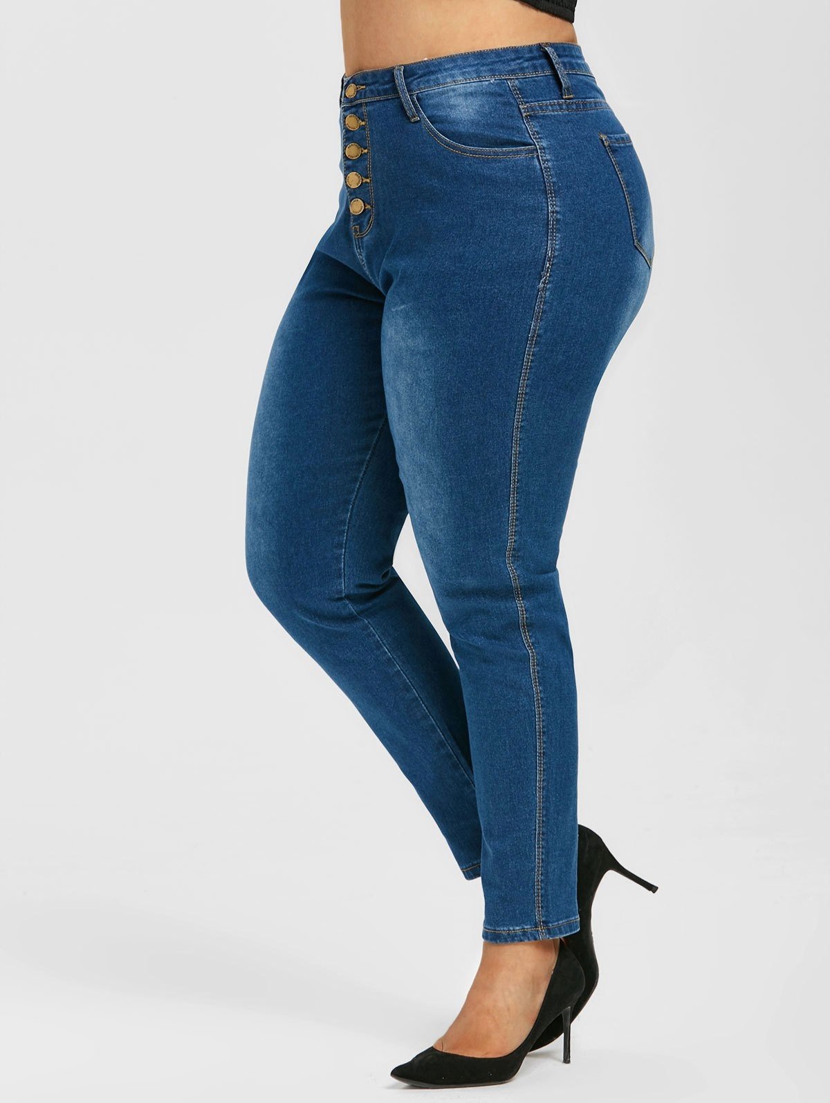 Button Fly High Waisted Plus Size Skinny Jeans