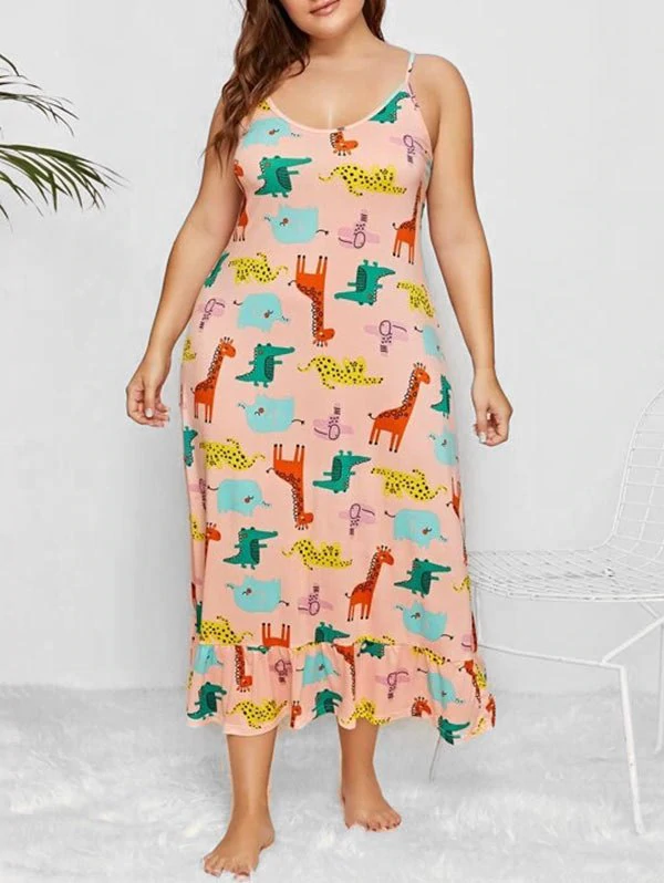 Cartoon Animal Print Flounce Plus Size Nightdress