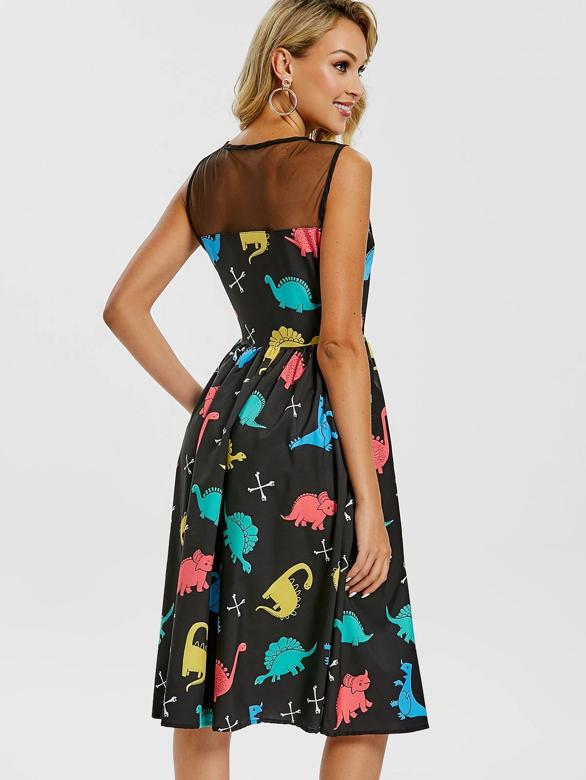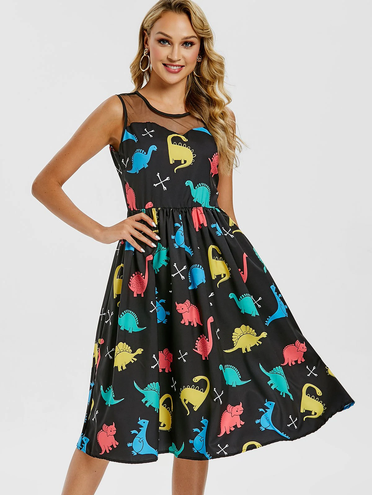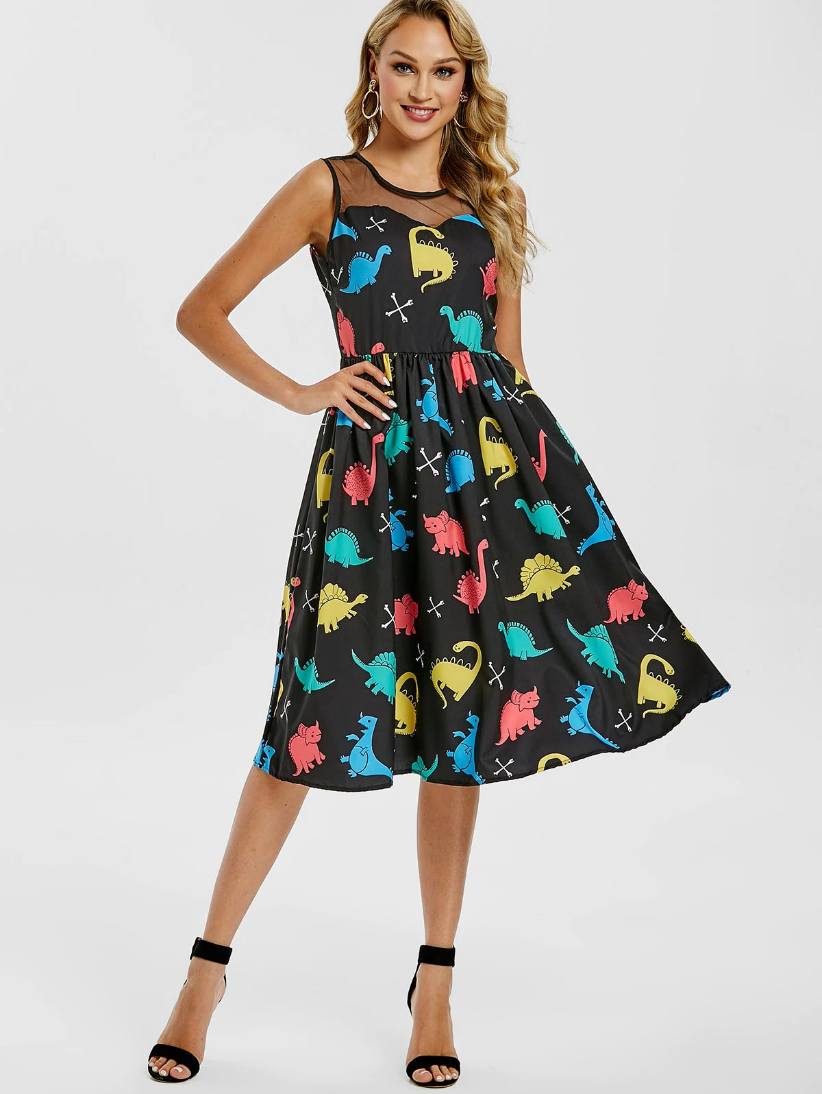 Cartoon Dinosaur Print Vintage Dress
