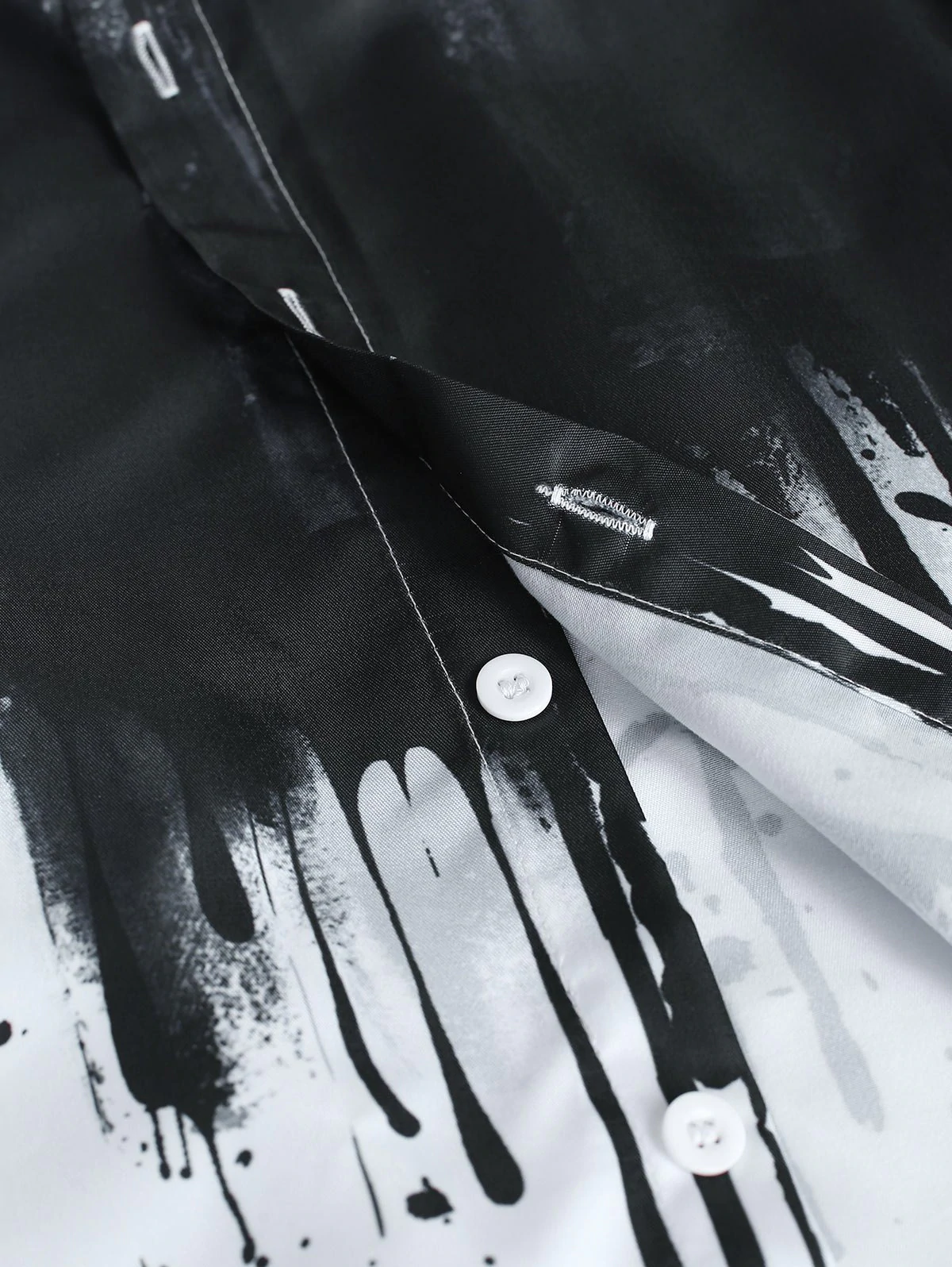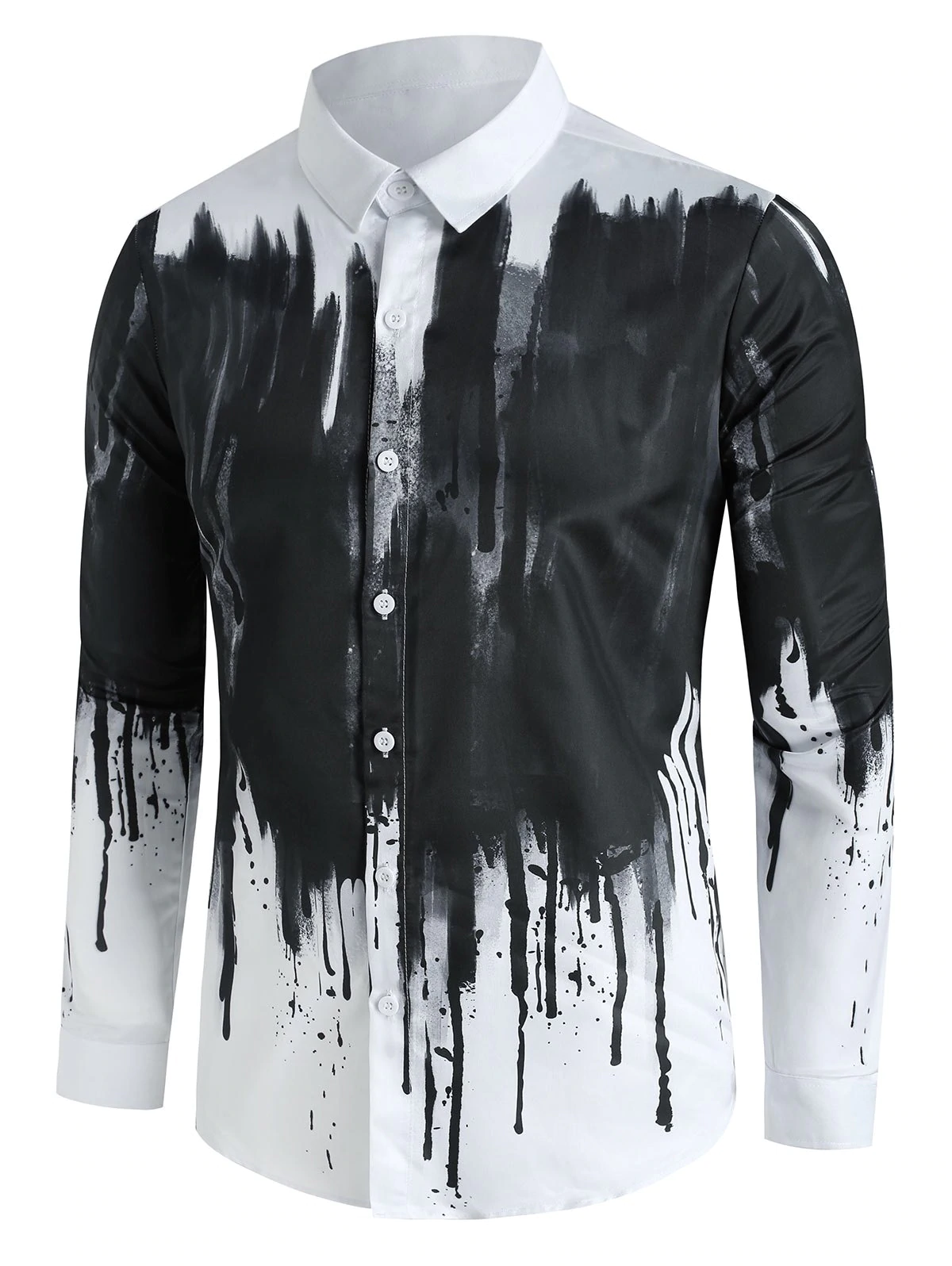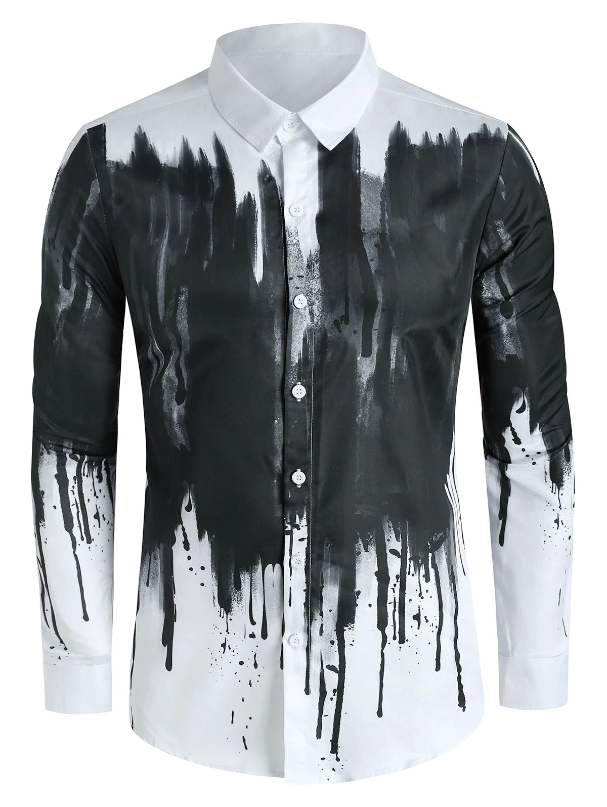 Chinese Splatter Ink Print Button Up Long Sleeve Shirt