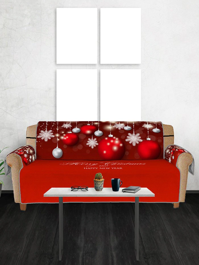 Christmas Balls Snowflake Greeting Pattern Couch Cover