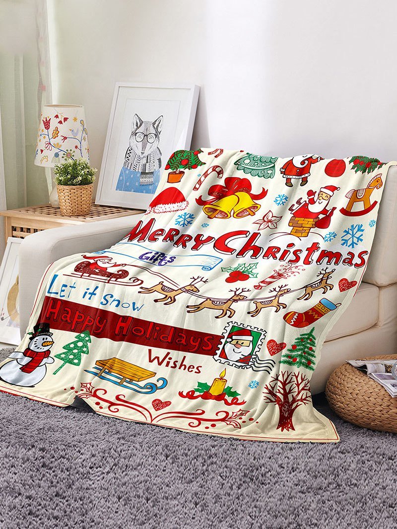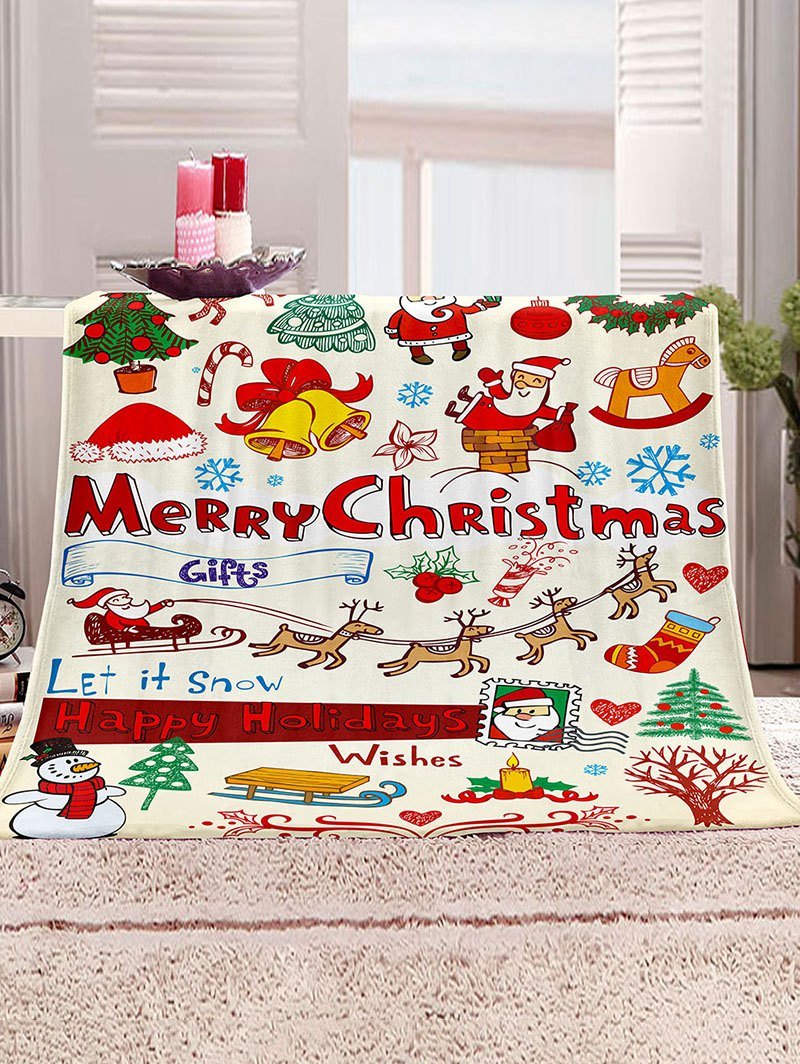 Christmas Cartoon Santa Print Flannel Blanket