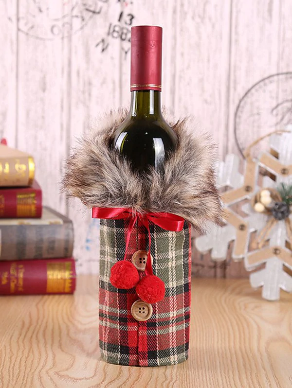 Christmas Faux Fur Collar Coat Design Wine Bottle Cover