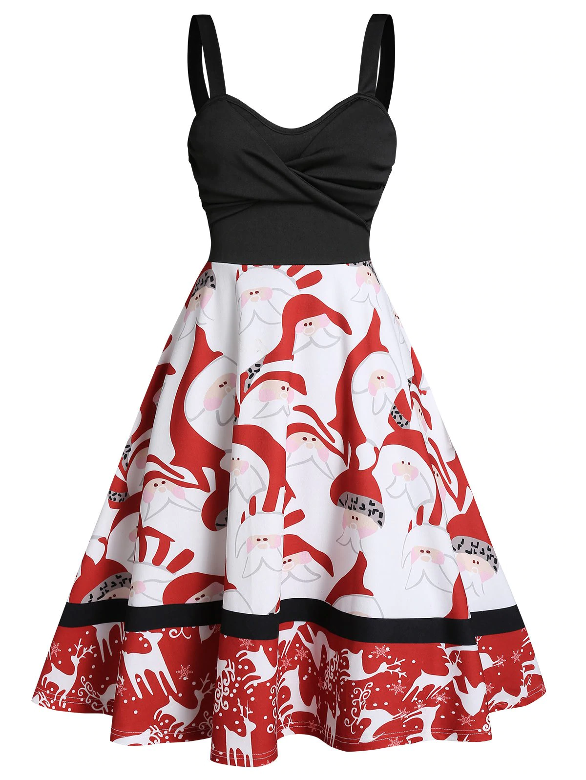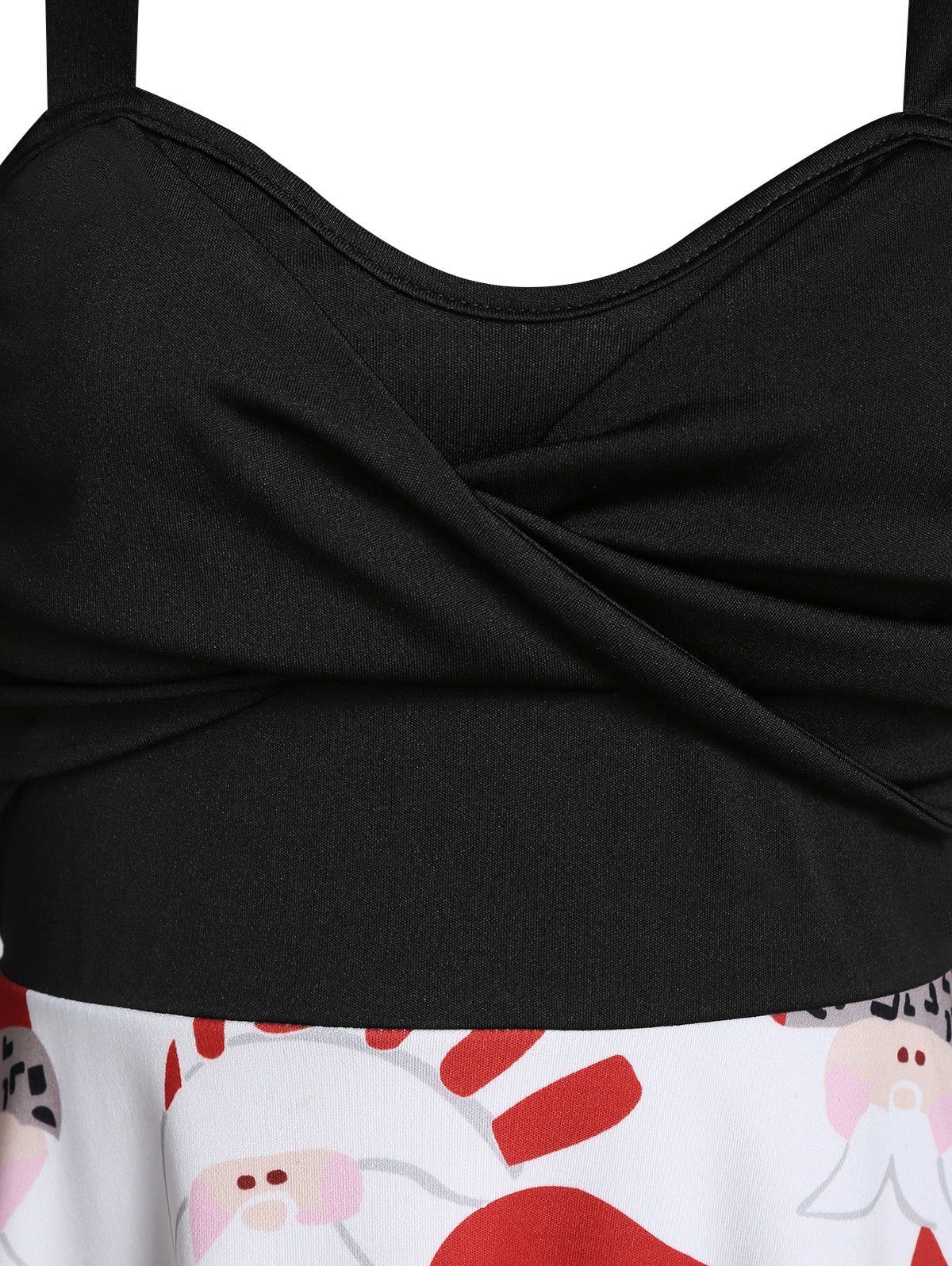 Christmas Santa Claus Elk Print Twist Front Skater Dress