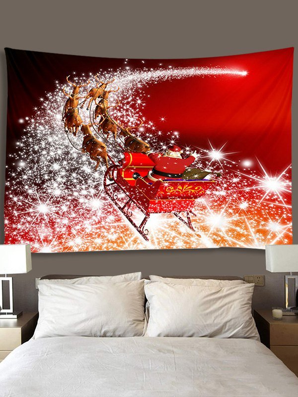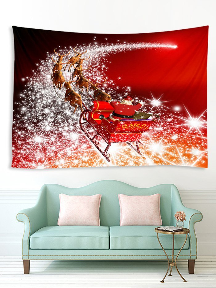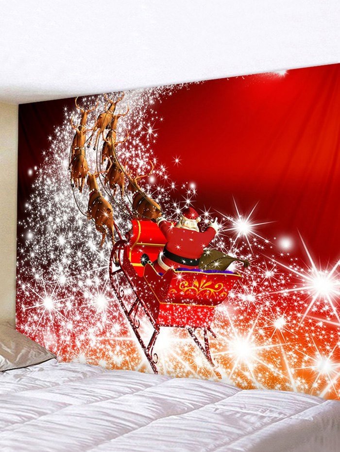 Christmas Santa Claus Elk Sleigh Print Tapestry Wall Hanging Art