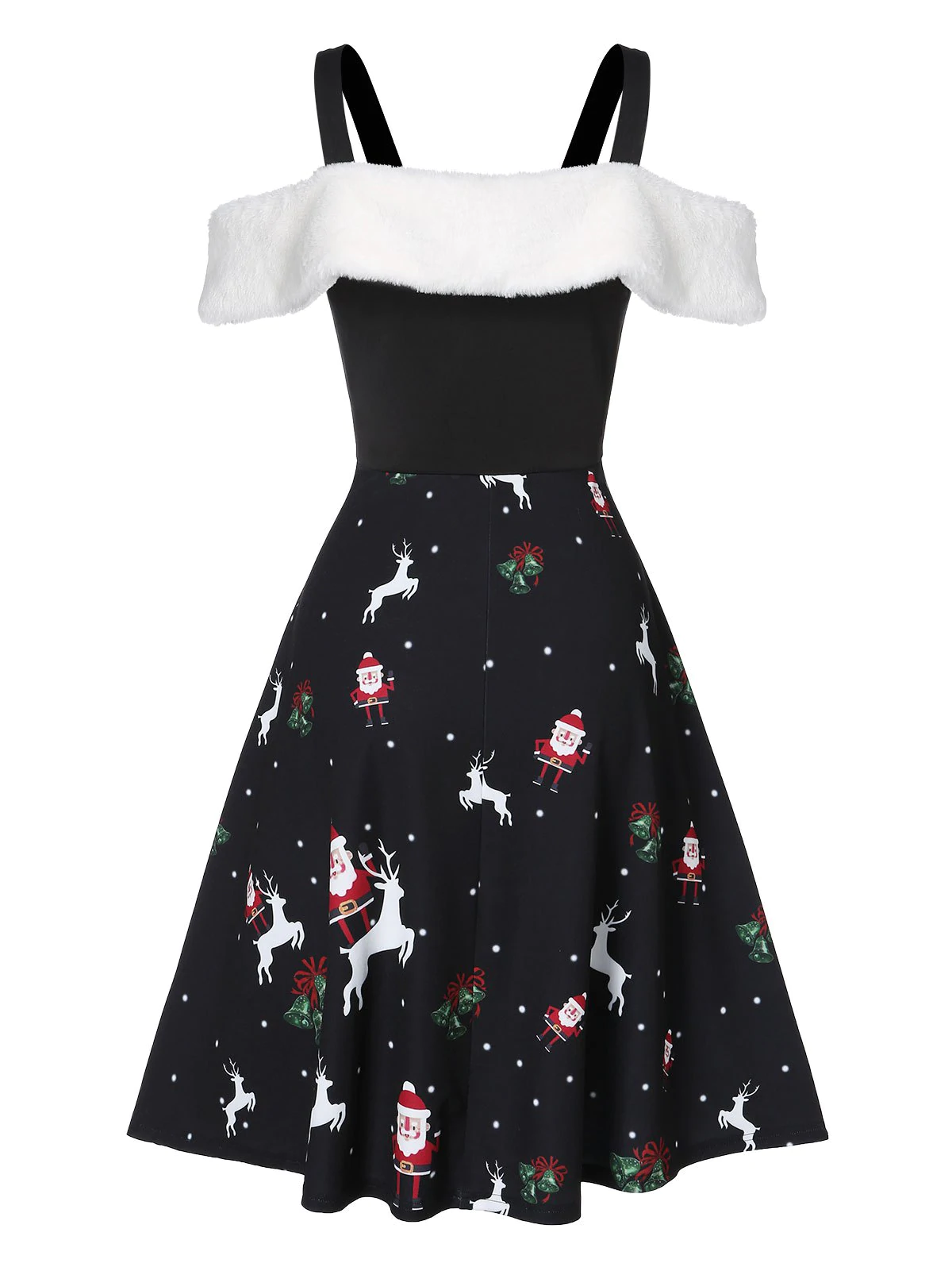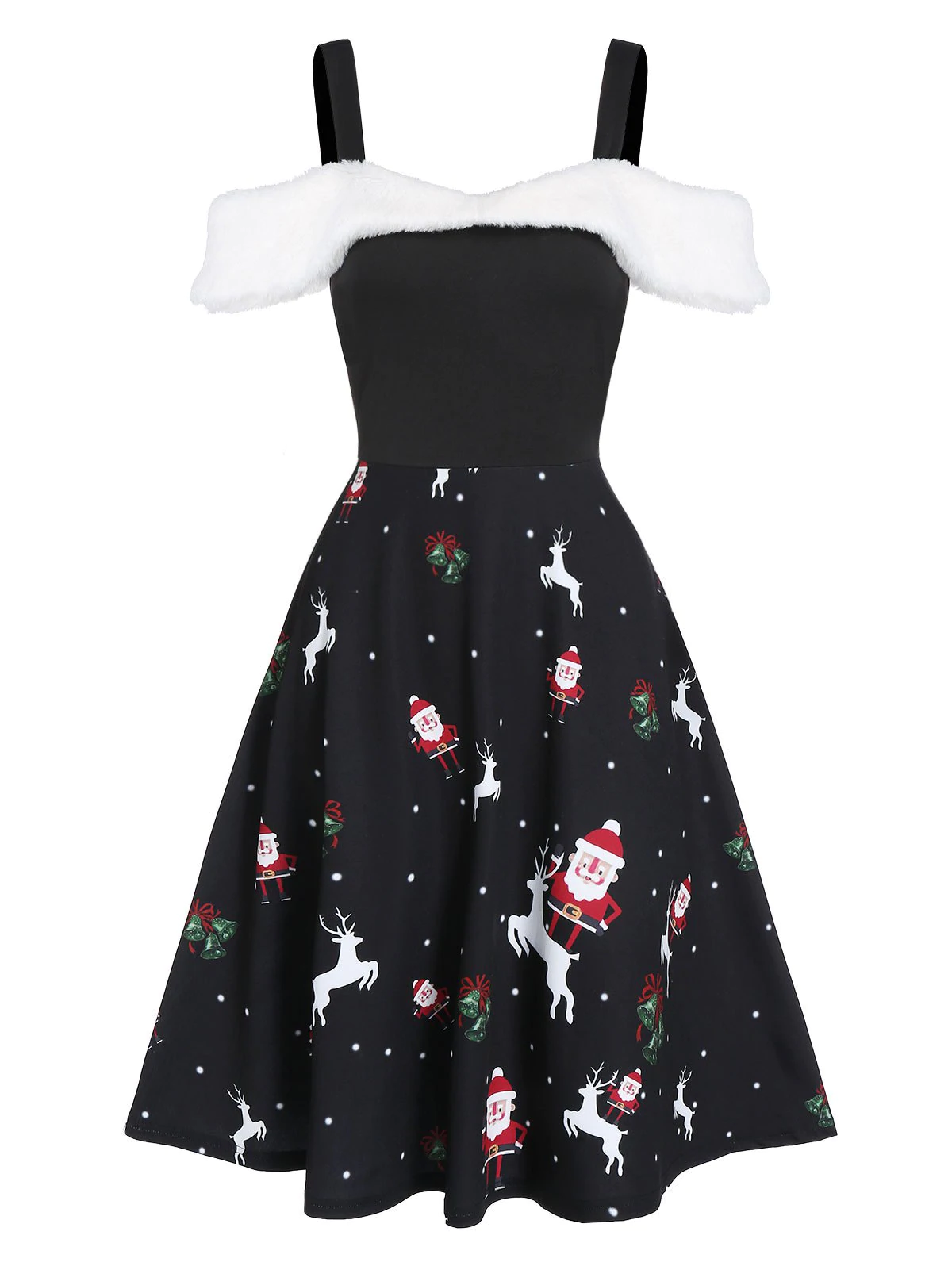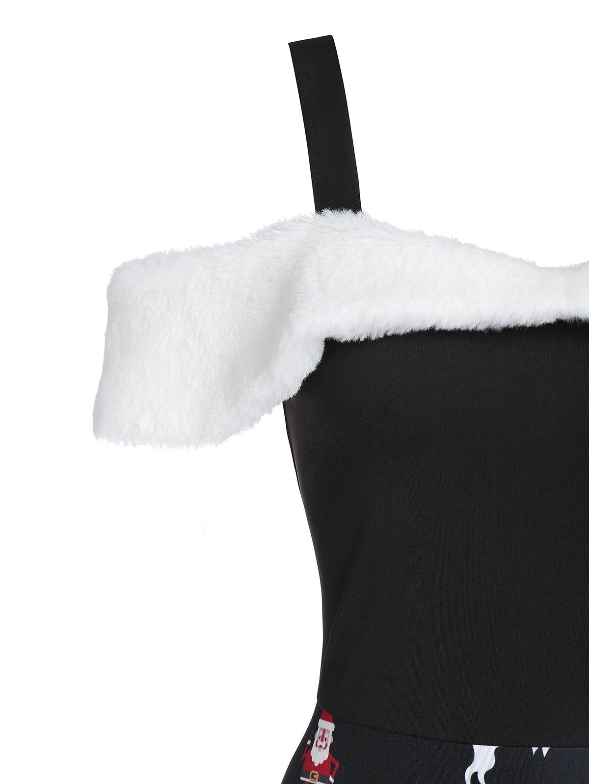 Christmas Santa Claus Print Faux Fur Cold Shoulder Dress
