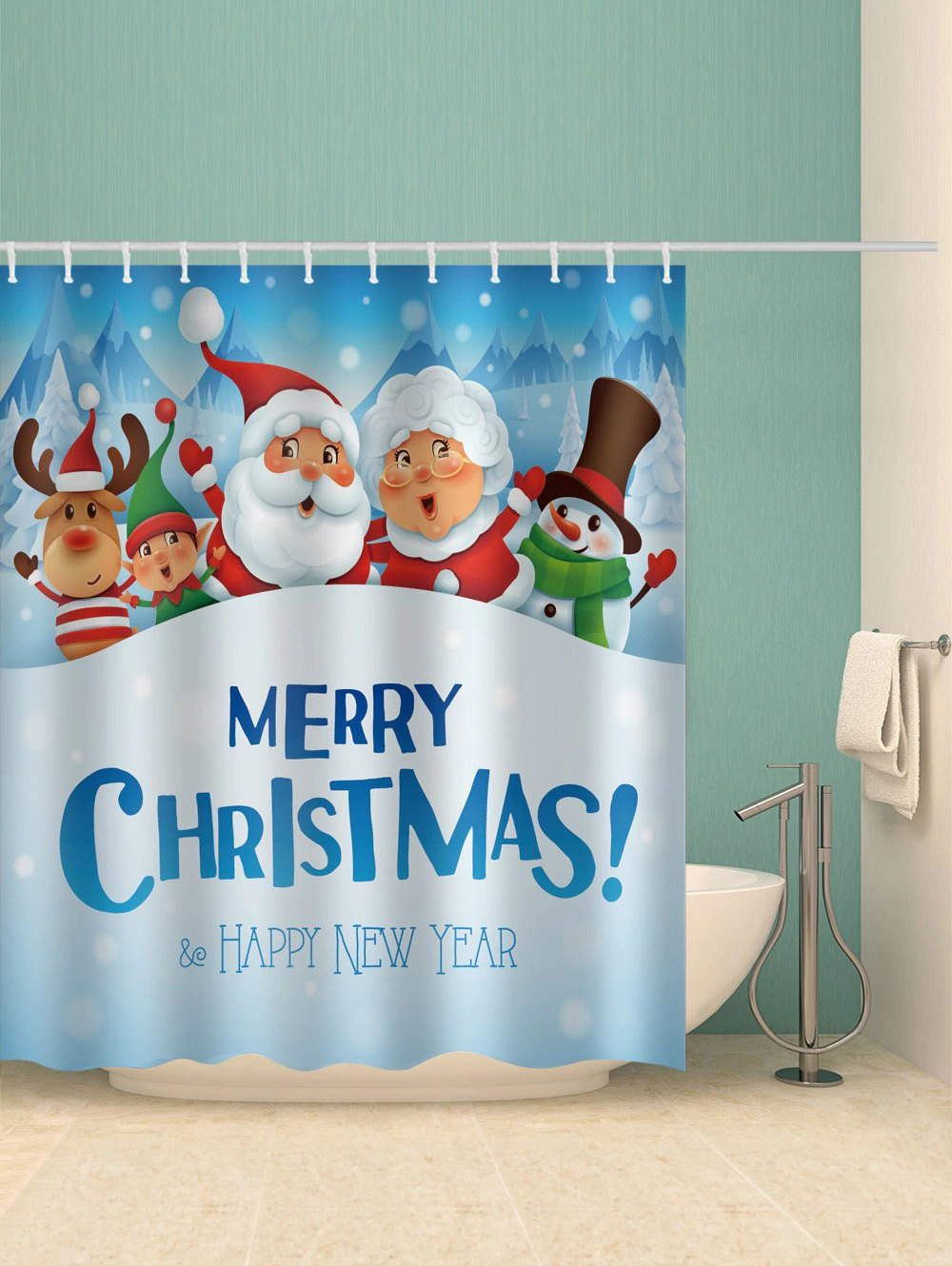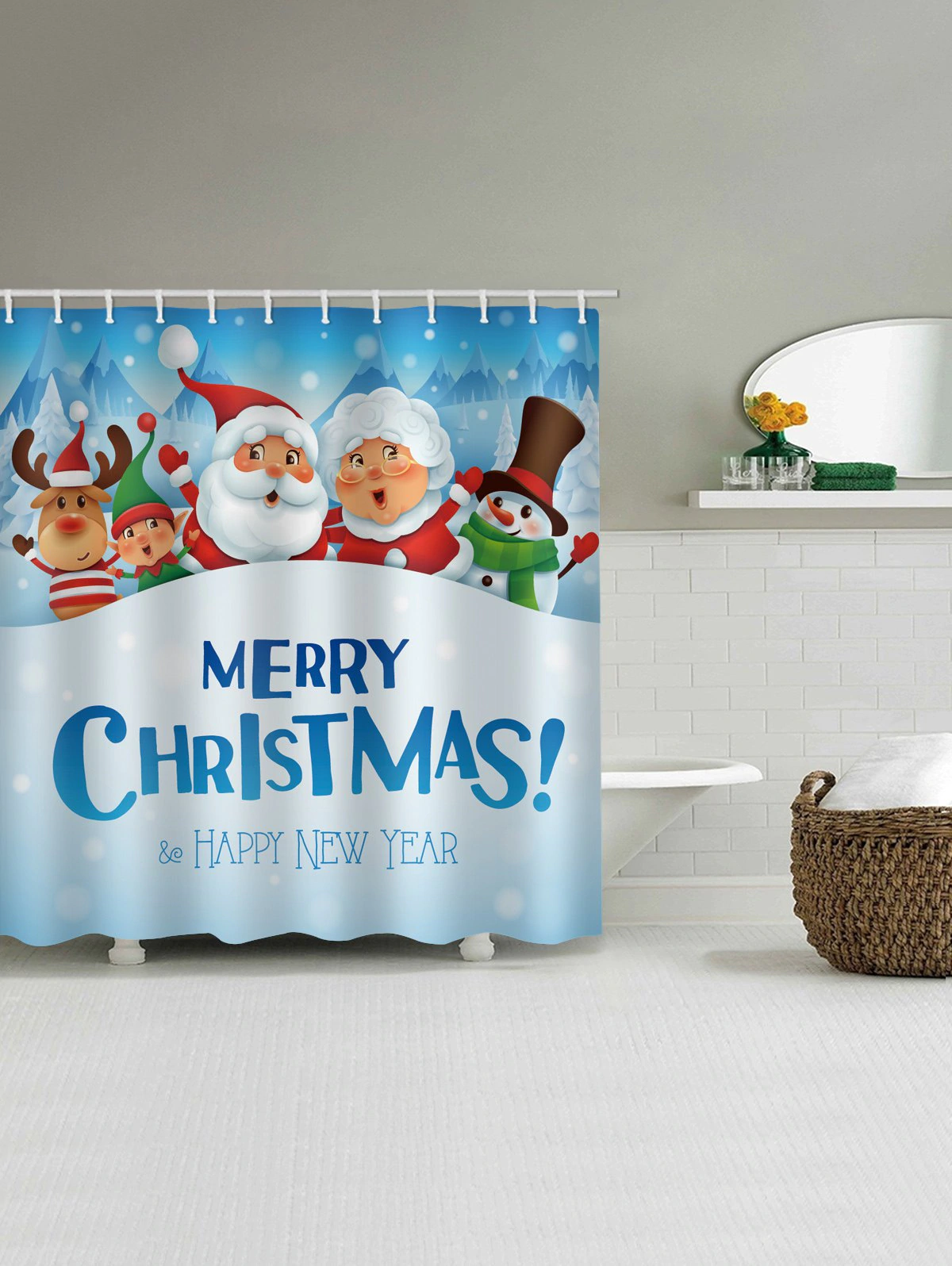 Christmas Santa Claus Snowman Elk Print Waterproof Bathroom Show