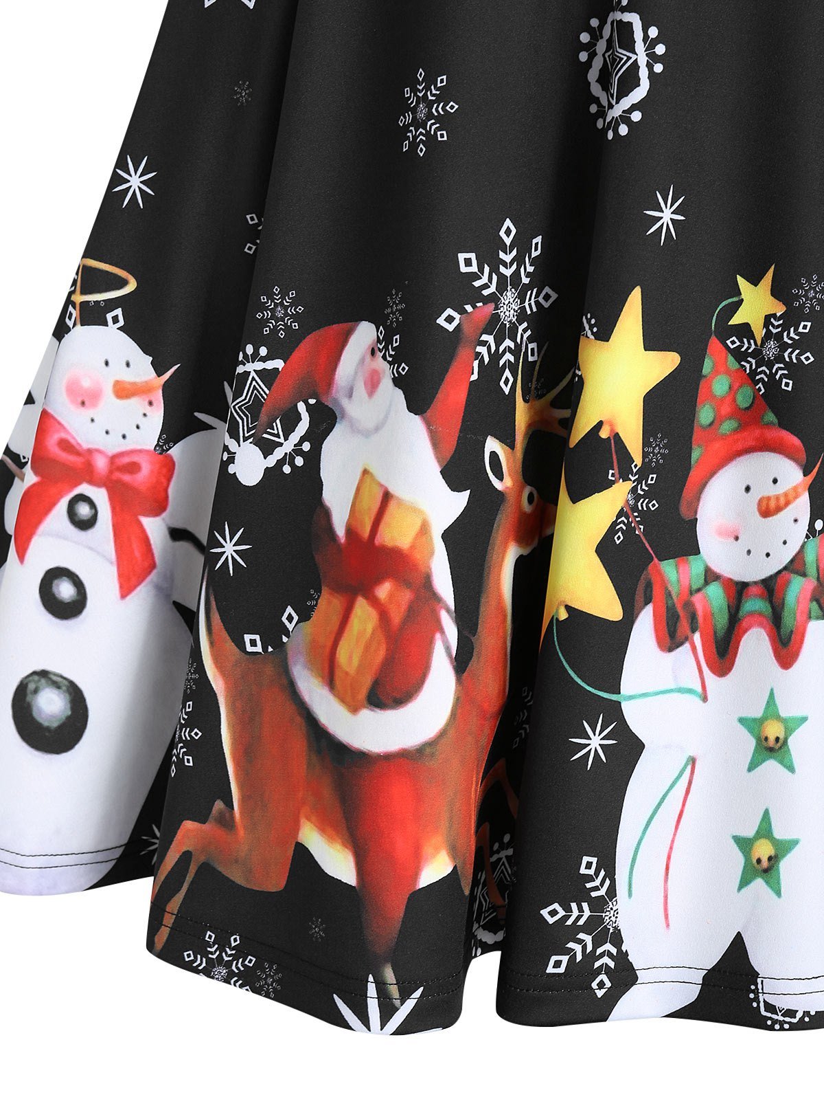 Christmas Santa Claus Snowman Print Sleeveless Flare Dress