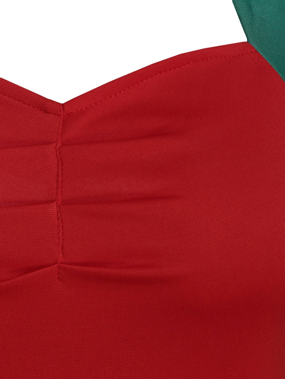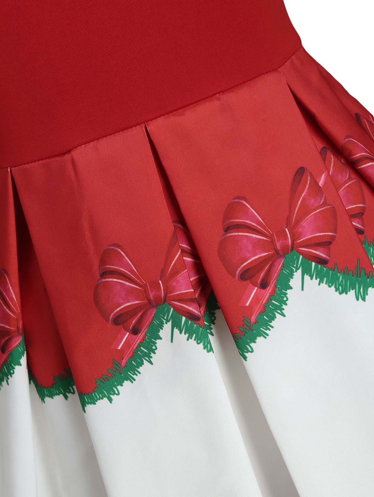 Vintage as it is, this Christmas party dress is supported by contrast wide halter straps that tie into a cute bowknot behind the neck. The snowman, bowknot, Christmas tree, Christmas bell and Christmas ball, nearly all of the Christmas elements can be found on this dress. Just get this dress and be ready for the Christmas party!