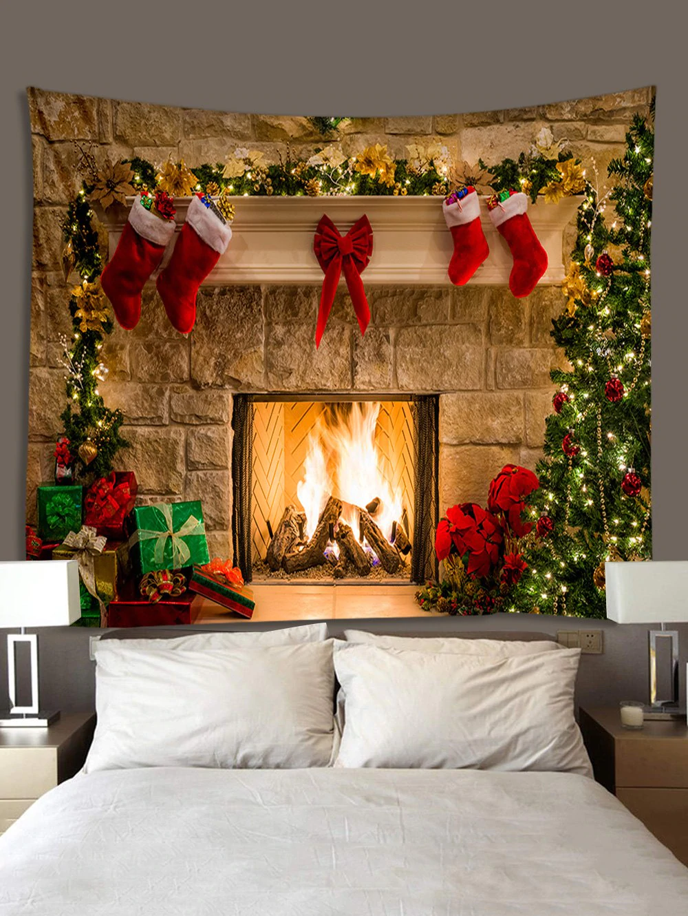 Christmas Stockings Fireplace Print Wall Tapestry