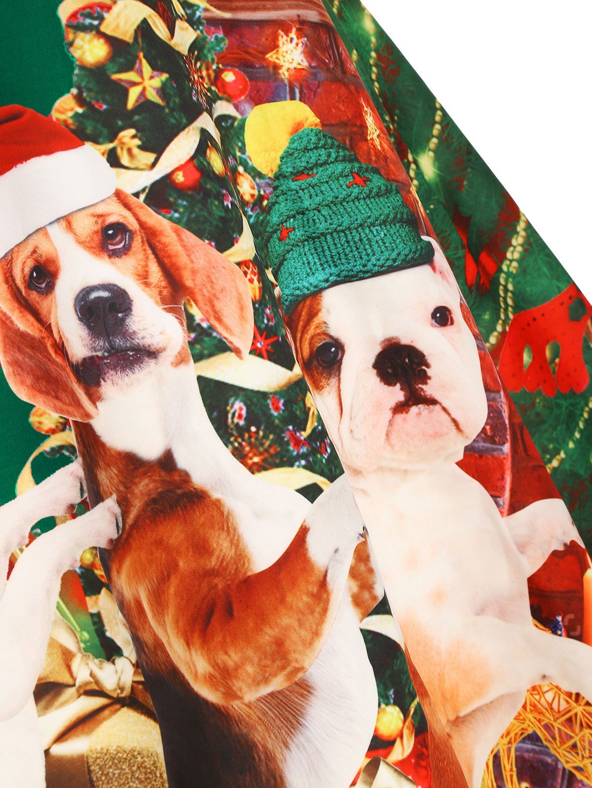 Christmas Tree Dog Print Sequined Cold Shoulder Party Dress