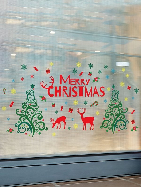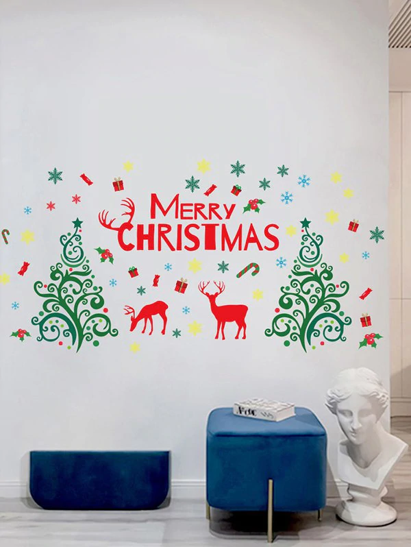 Christmas Tree Elk Letters Print Decorative Wall Stickers
