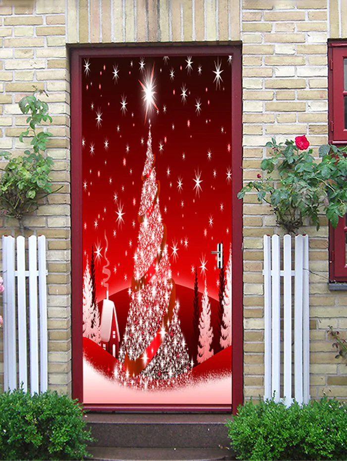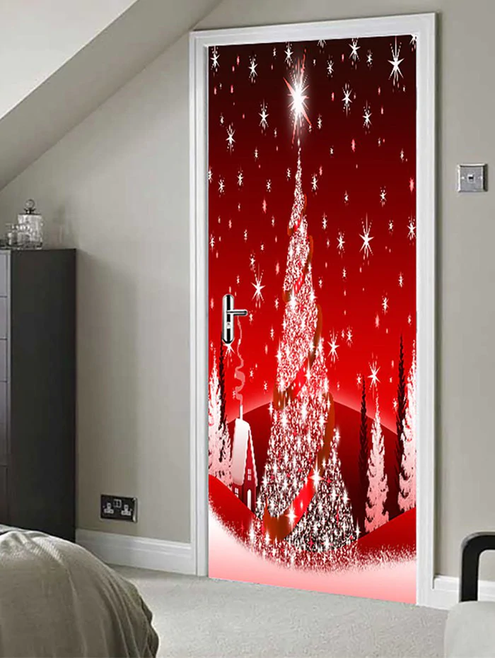 Christmas Tree Pattern Decorative Door Art Stickers