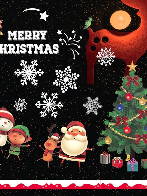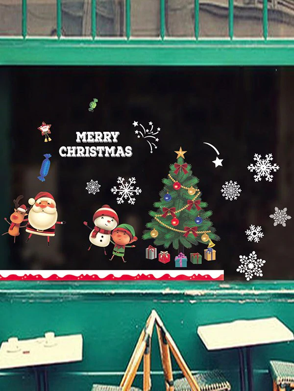 Christmas Tree Santa Print Window Glass Static Stickers Set