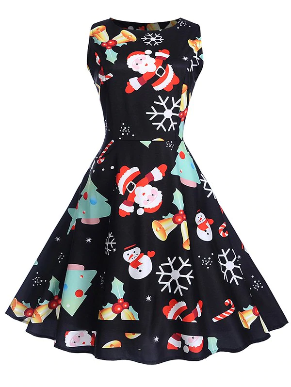 Christmas Vintage Print Fit and Flare Dress