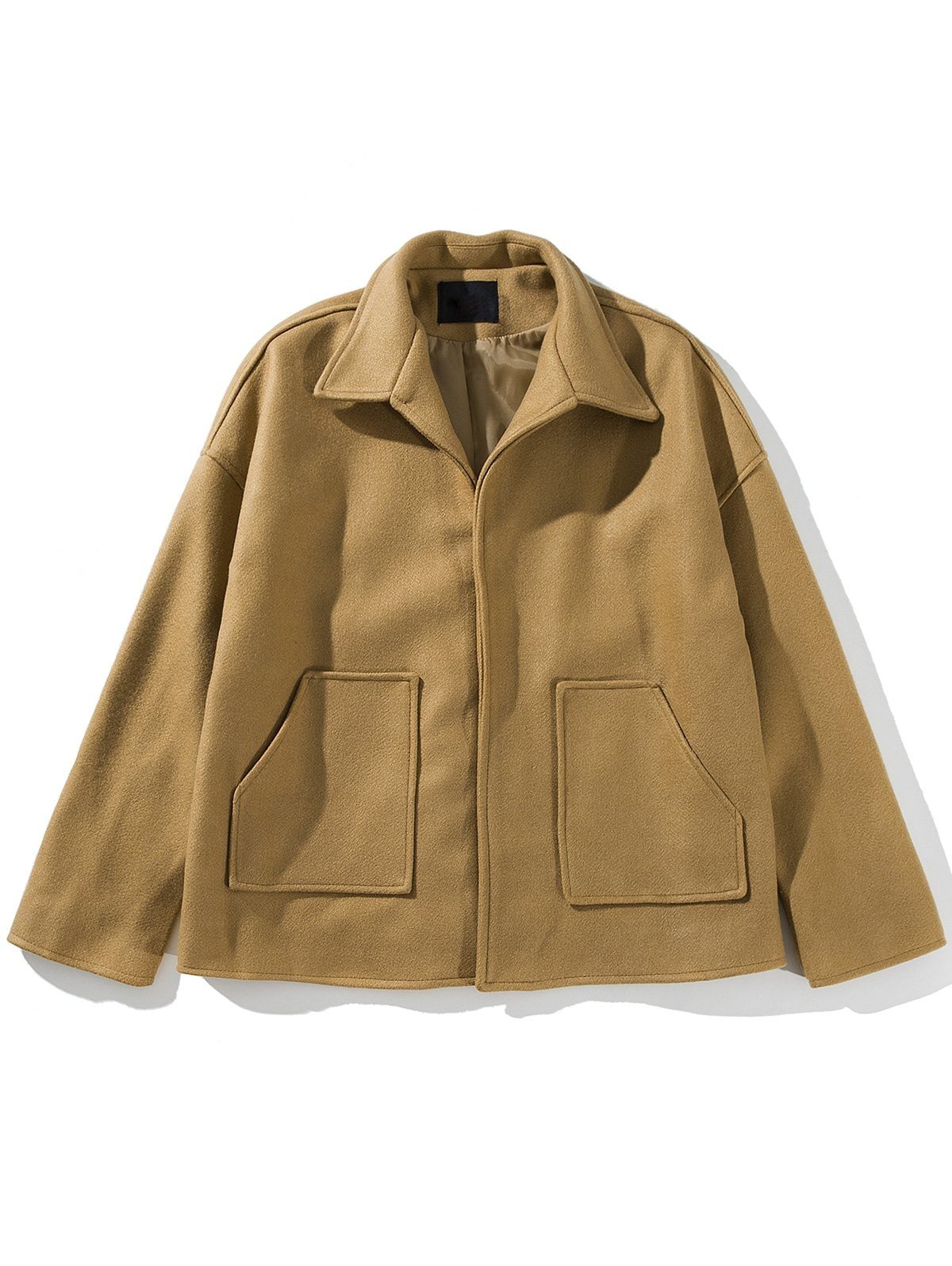 – Woolen jacket with open placket, pockets on the front, cloak design.