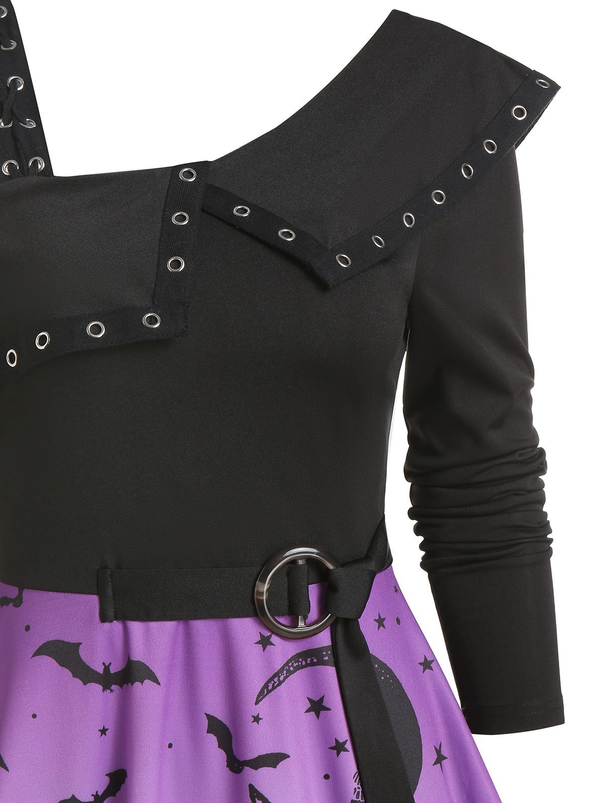 2 reviews for Cold Shoulder Halloween Print Belted Mini Dress