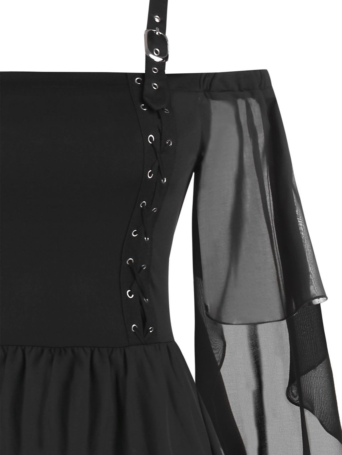 Cold Shoulder Lace-up Handkerchief Chiffon Dress