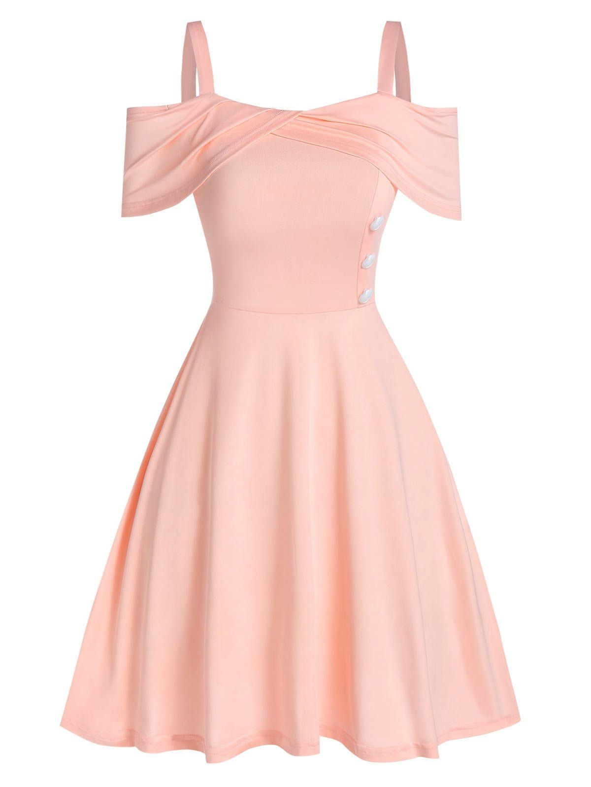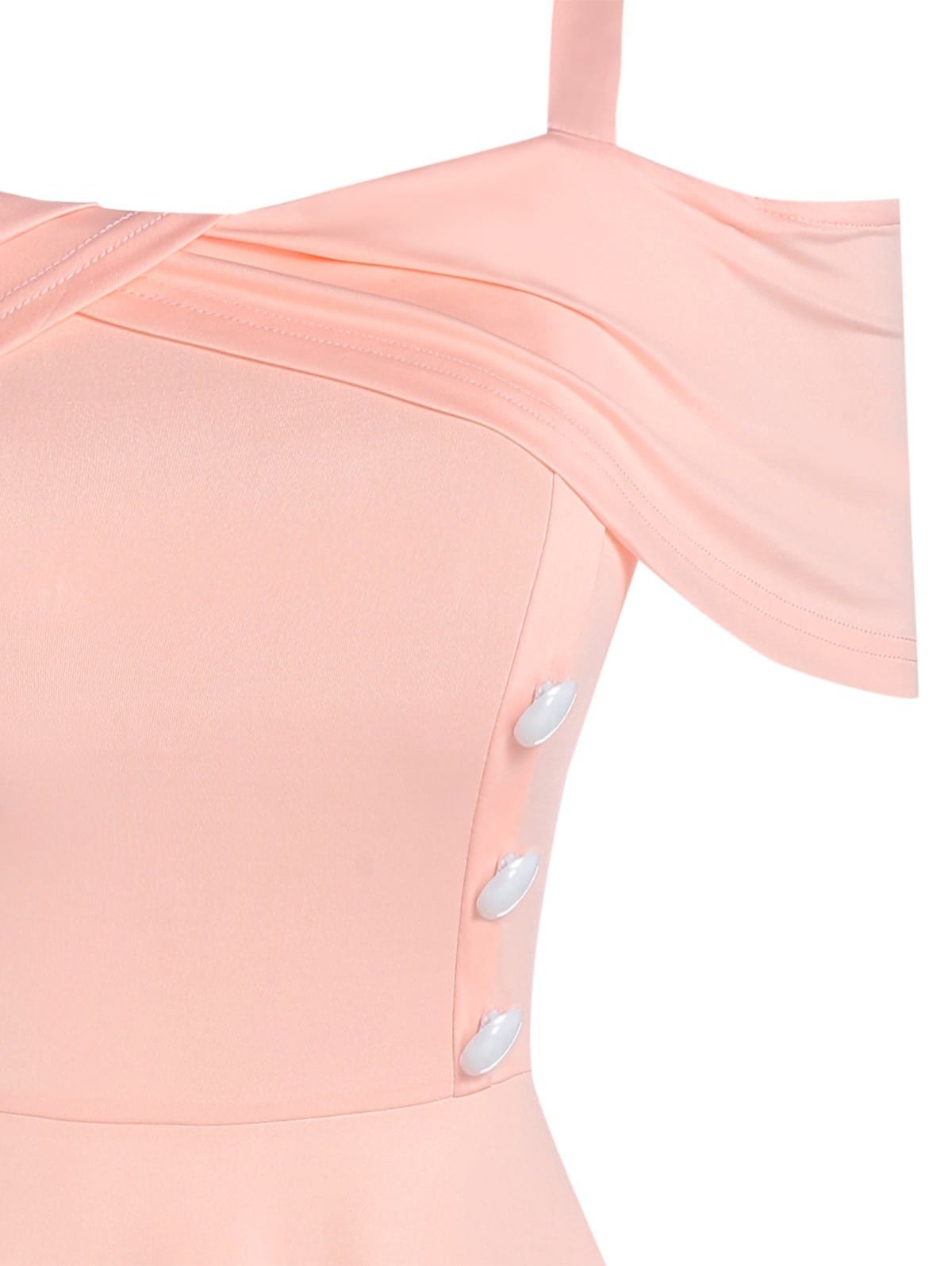 Cold Shoulder Mock Button Marled Dress