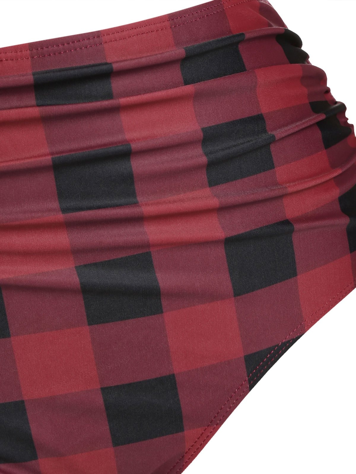 1 review for Cold Shoulder Plaid Print High Waisted Tankini Swimwear