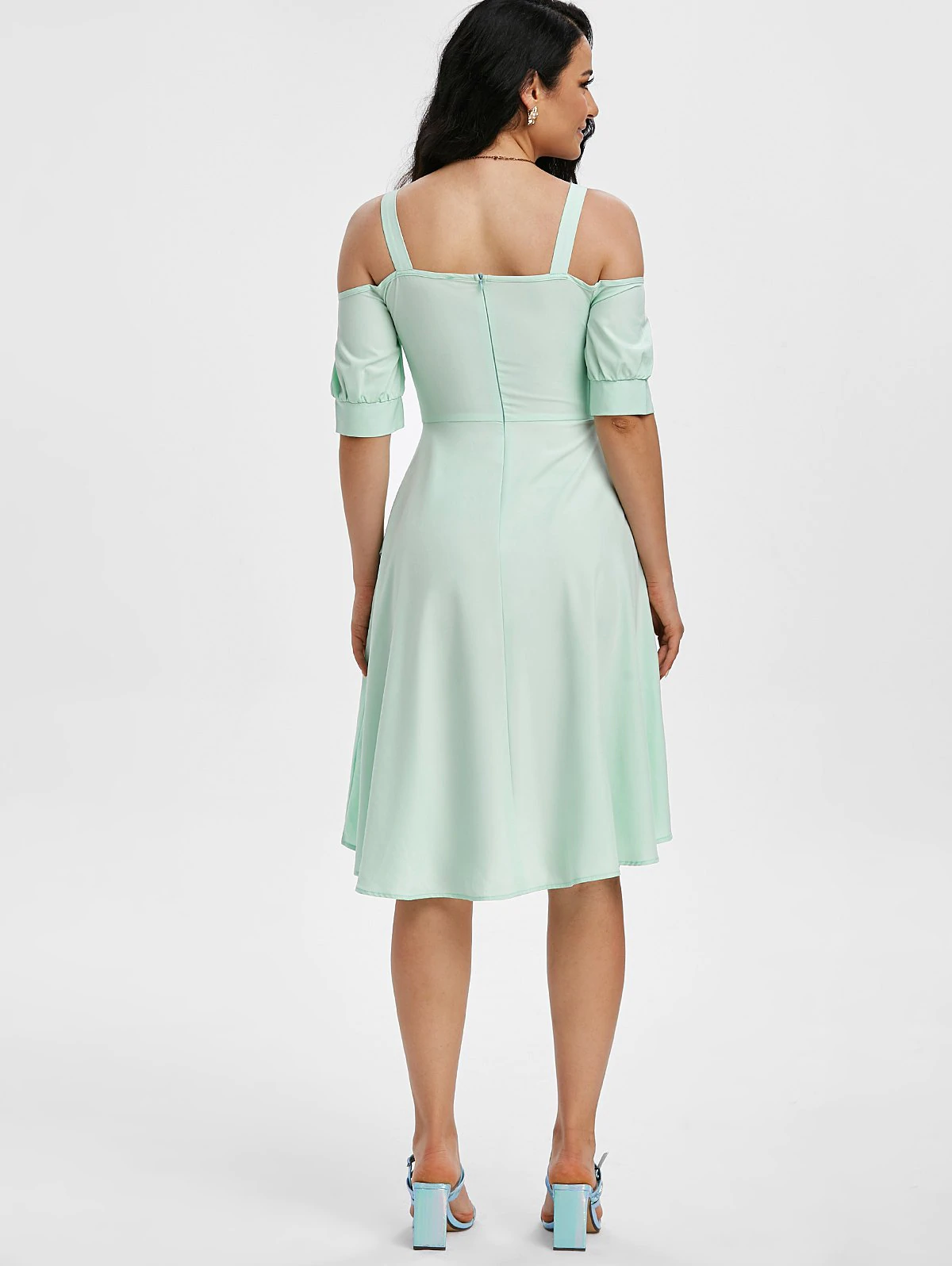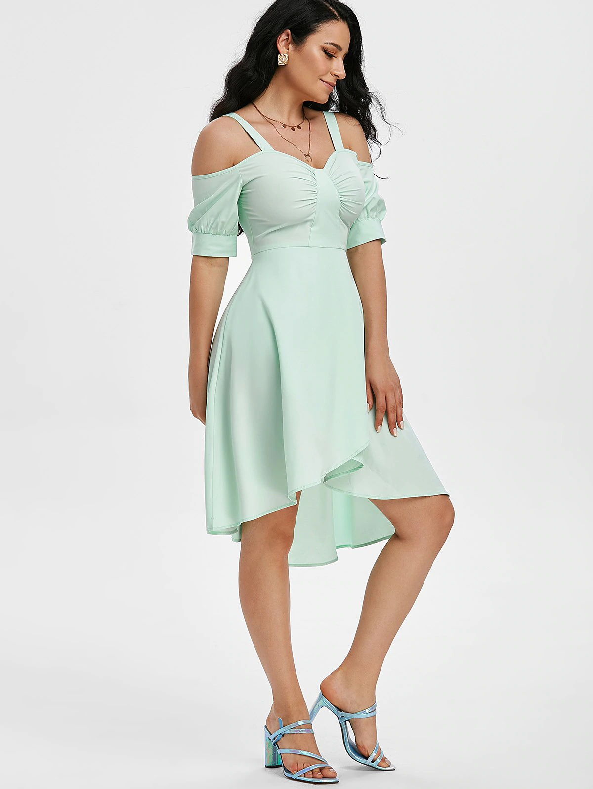 2 reviews for Cold Shoulder Ruched Overlap Dress