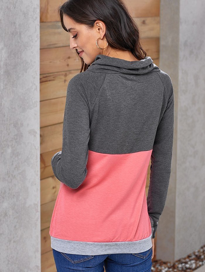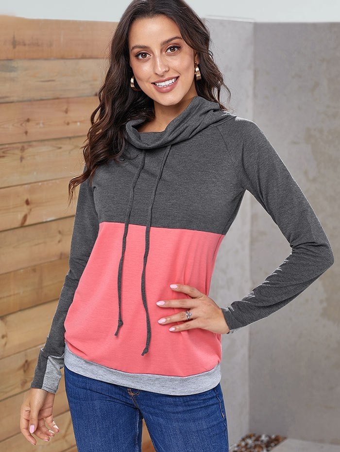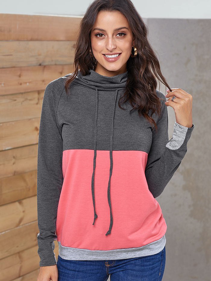 Color Block Drawstring Cowl Neck Sweatshirt