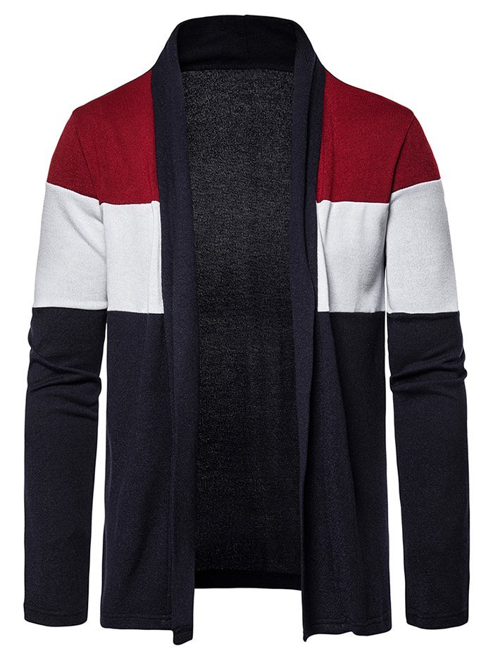 Color Block Open Front Long Sleeve Cardigan