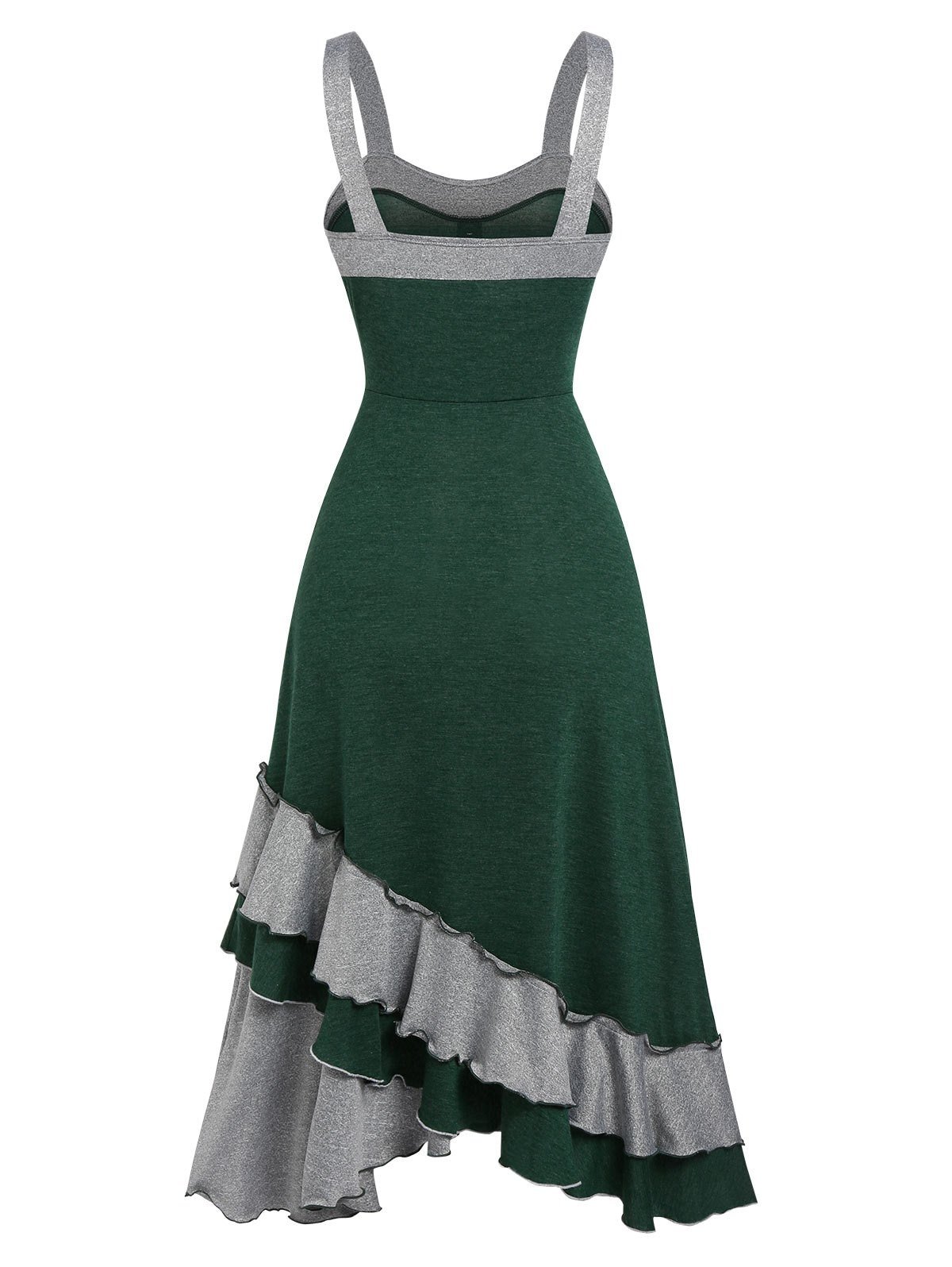 Lace Up Ruffle Trim High Low Two Piece Dress