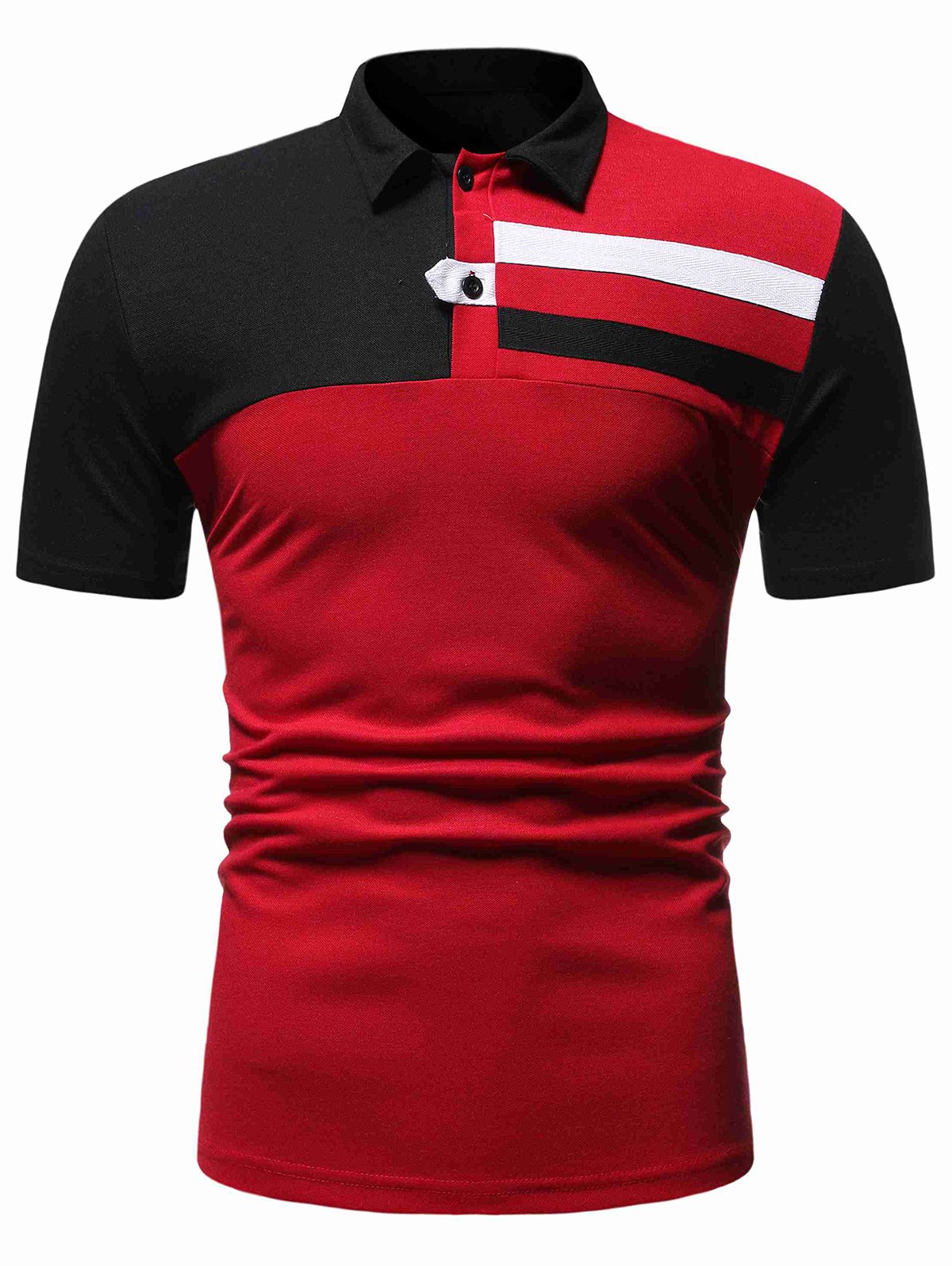 Colorblock Panel Turn-down Collar T-shirt
