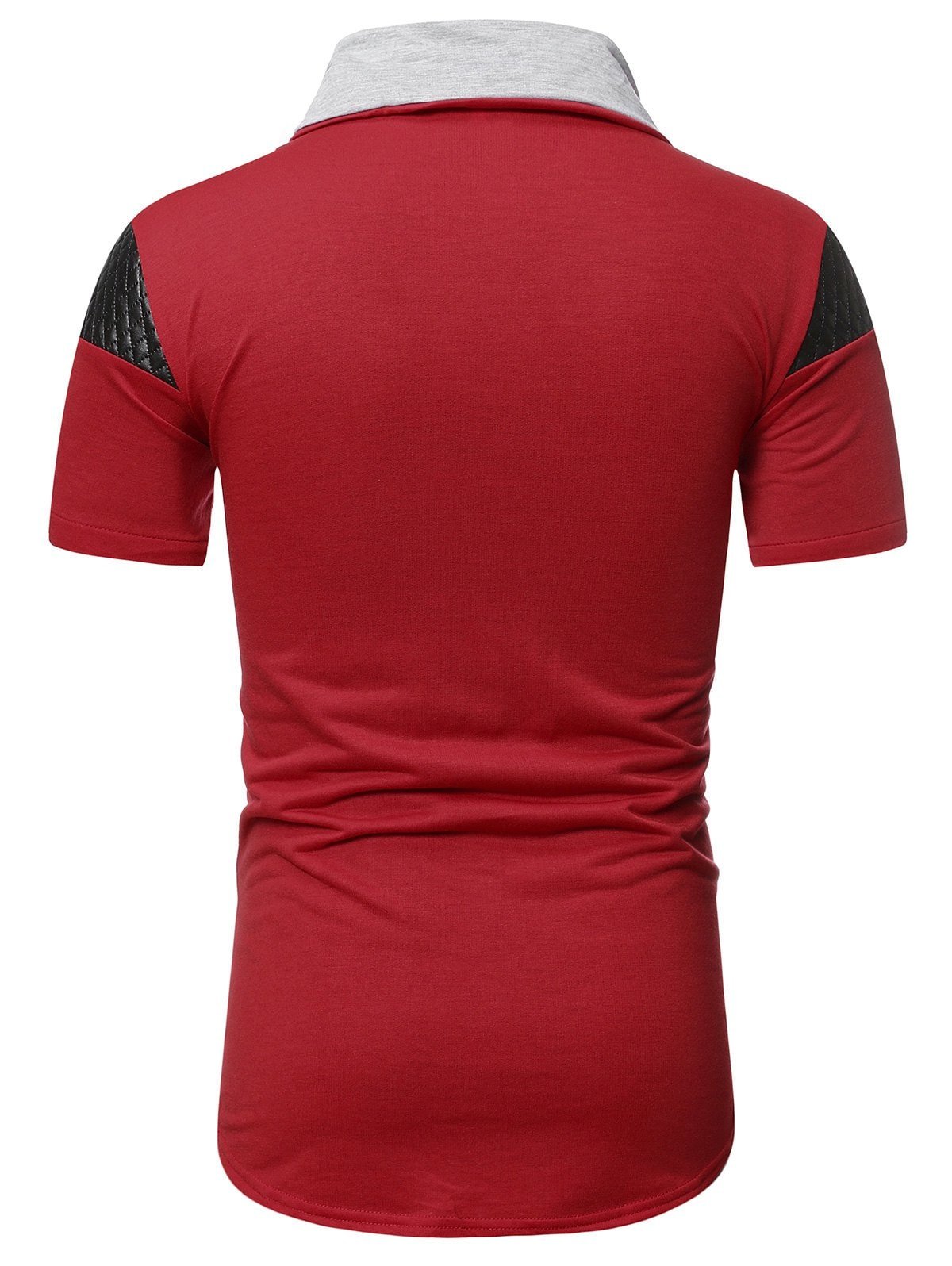 Colorblock Quilted Shawl Collar Short Sleeve T Shirt
