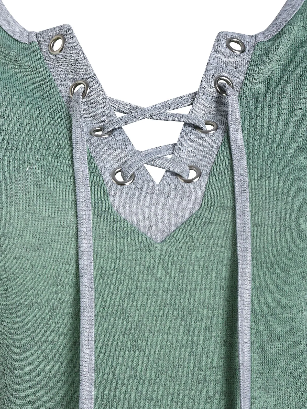 Contrast Lace-up Raglan Sleeve T-shirt