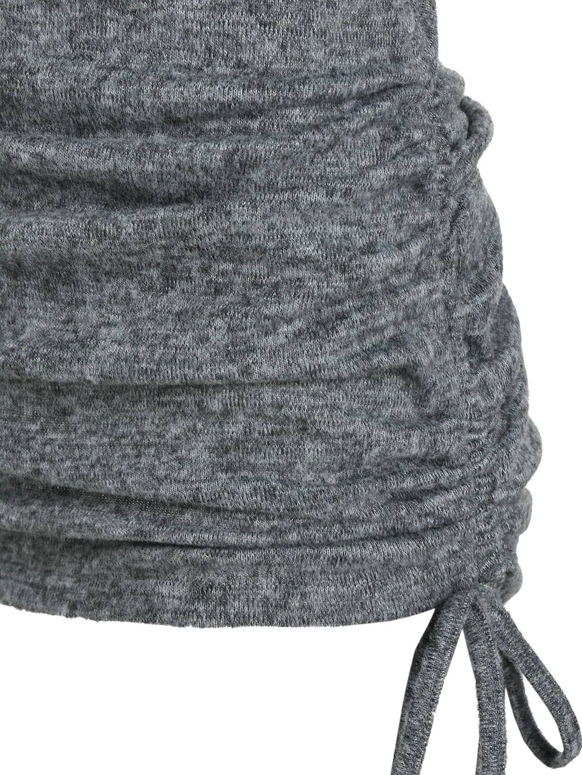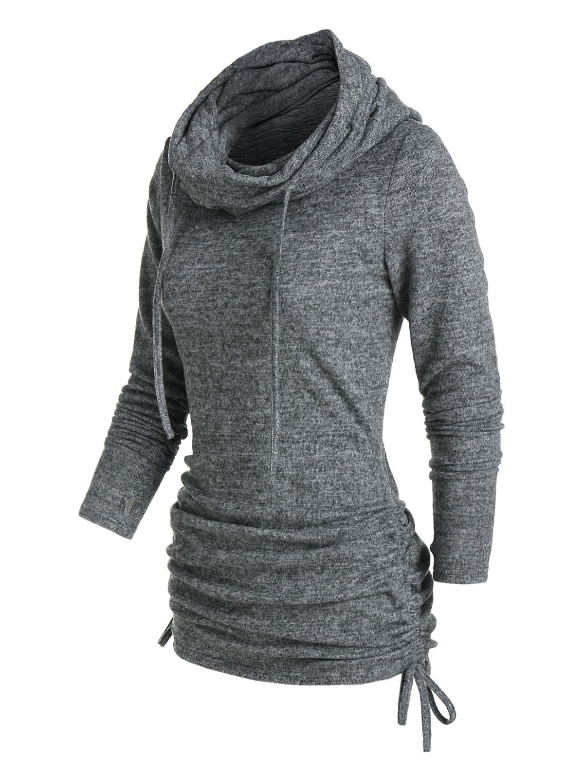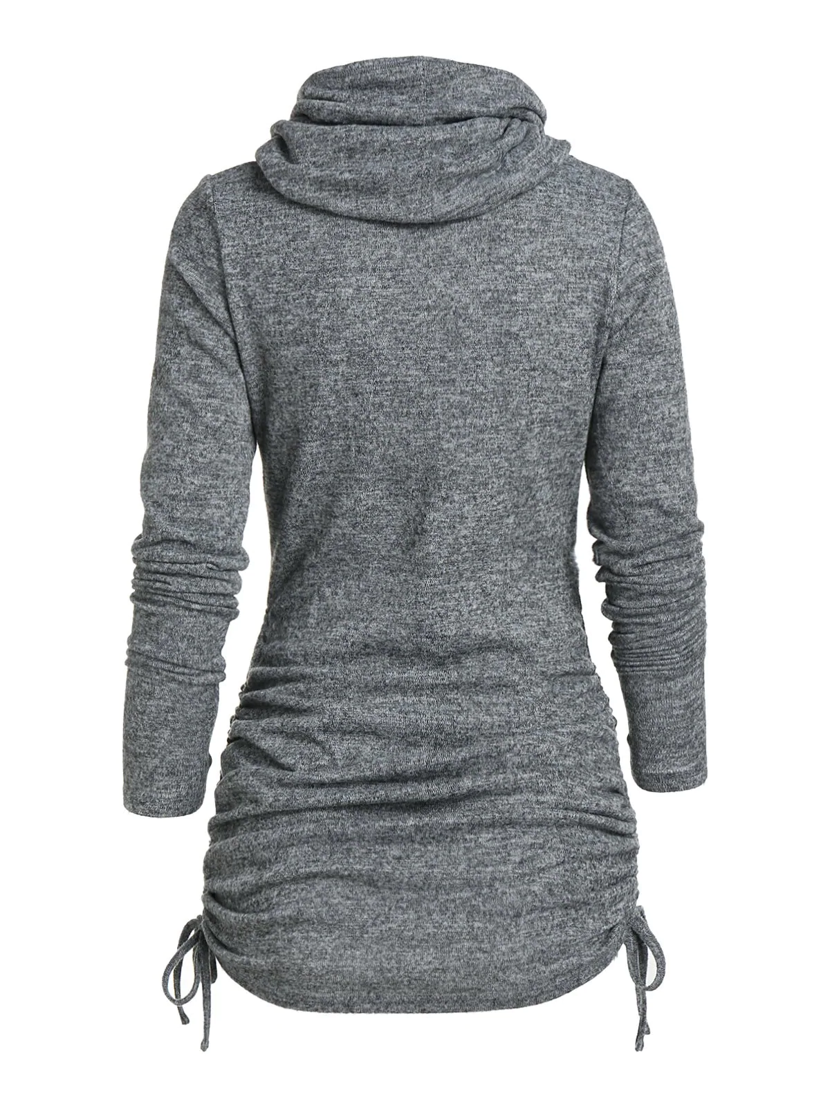 Cowl Neck Cinched Hem Knitted Drawstring Sweatshirt