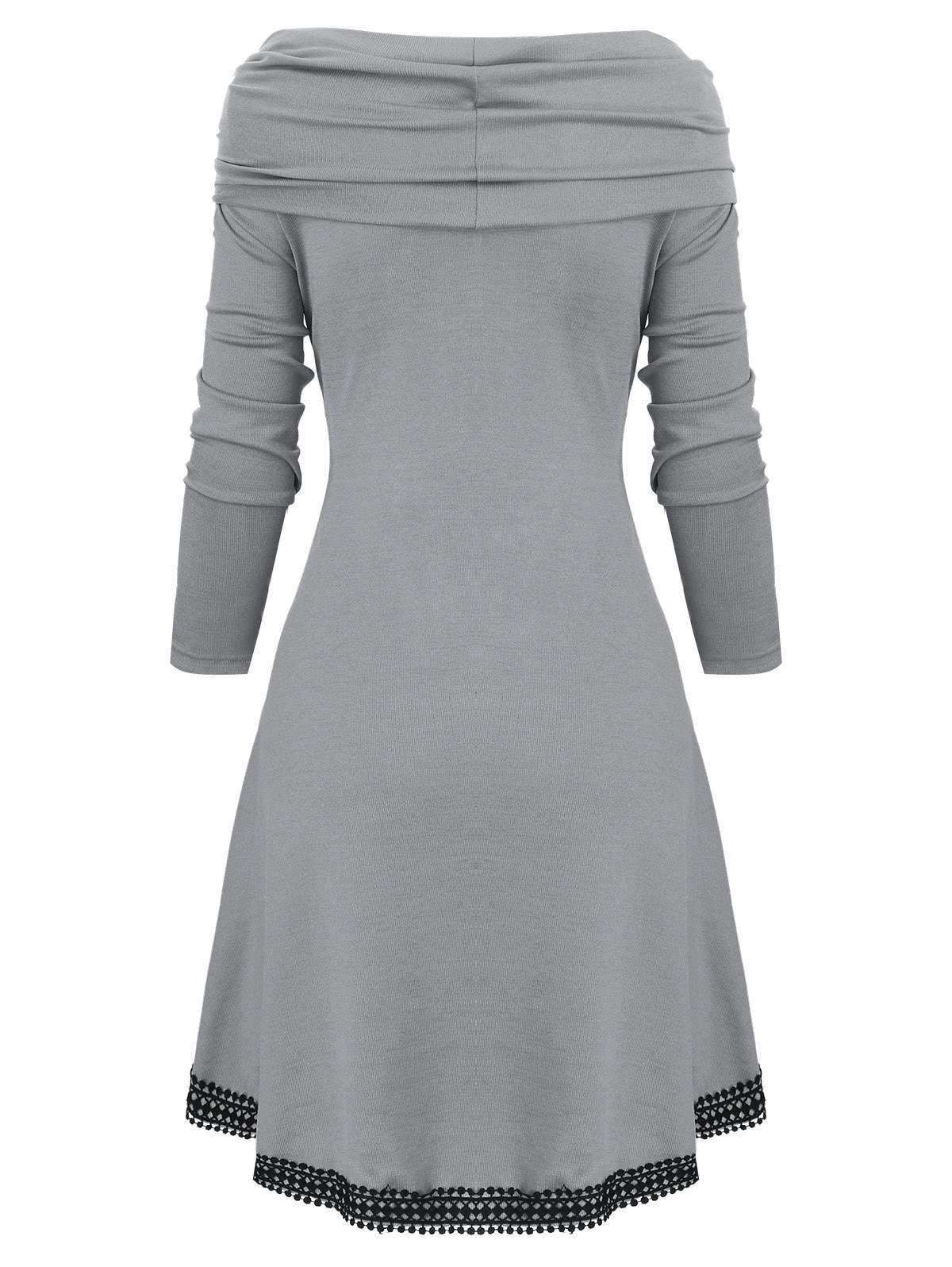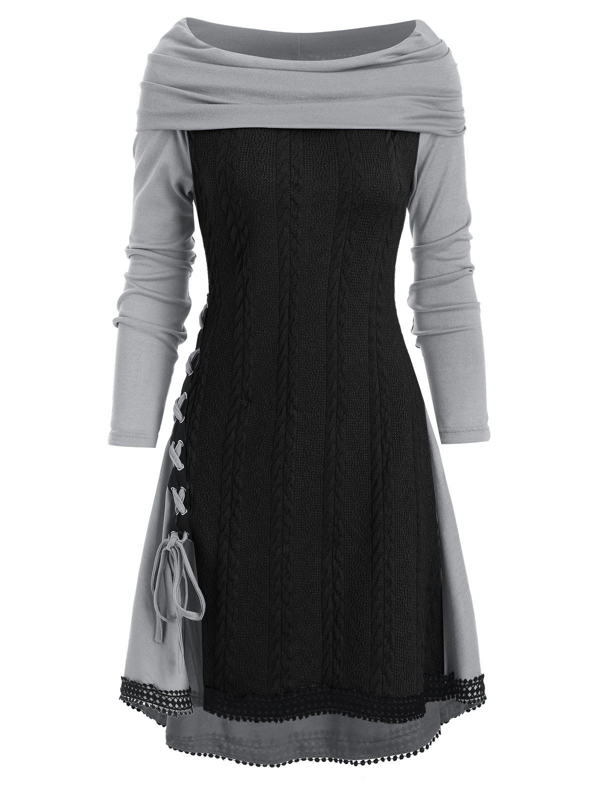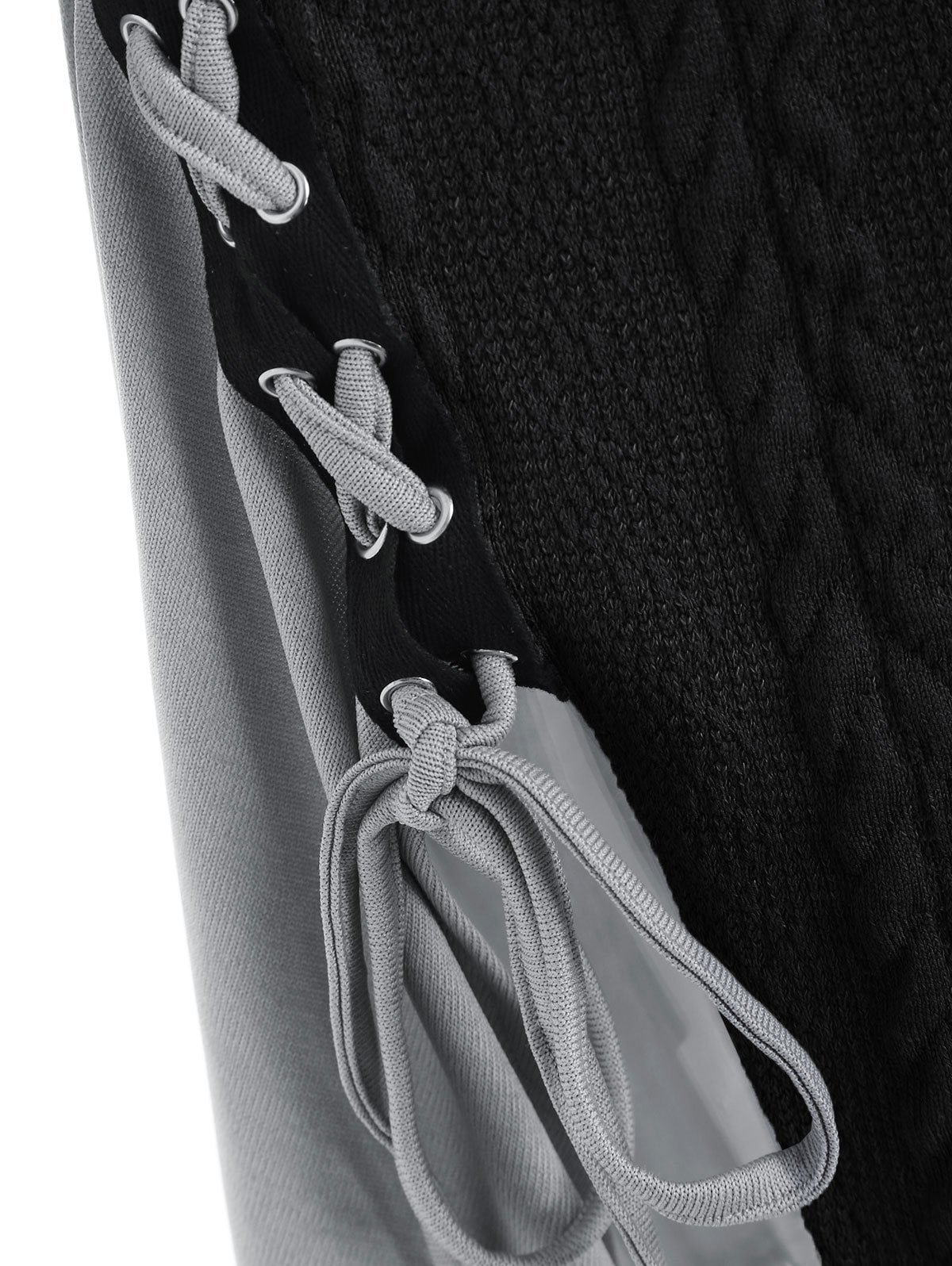 Cowl Neck Lace Up Guipure Panel Longline Knitwear