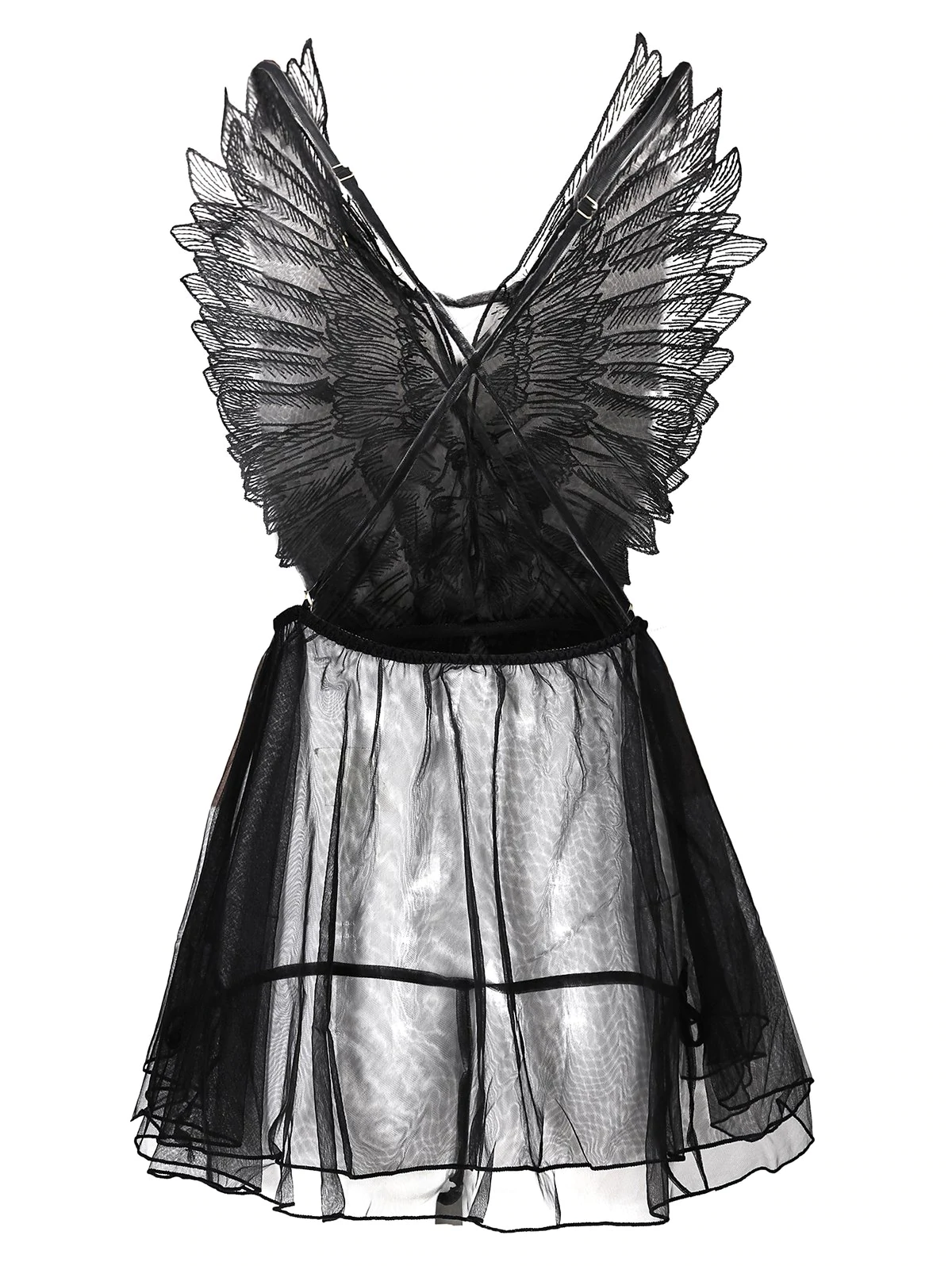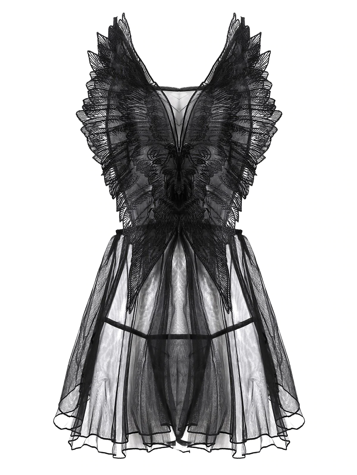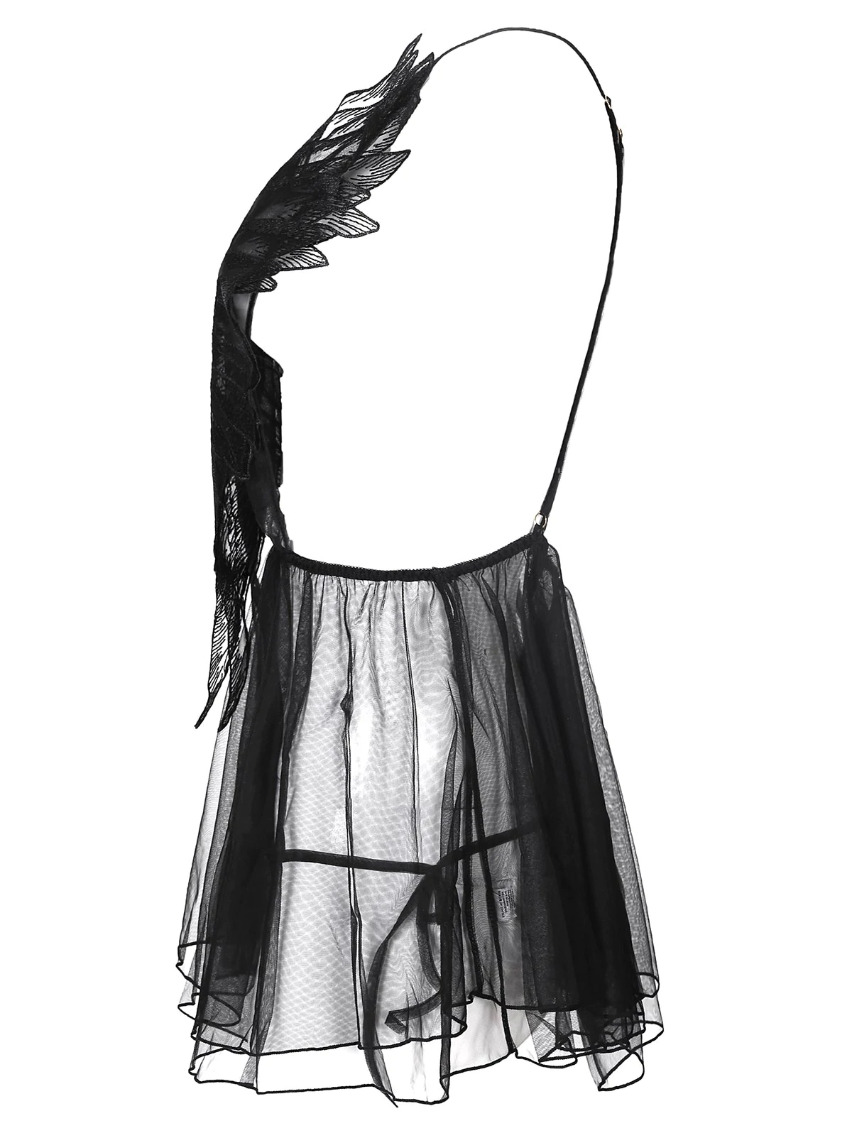 Criss Cross Embroidered Sheer Mesh Lingerie Babydoll