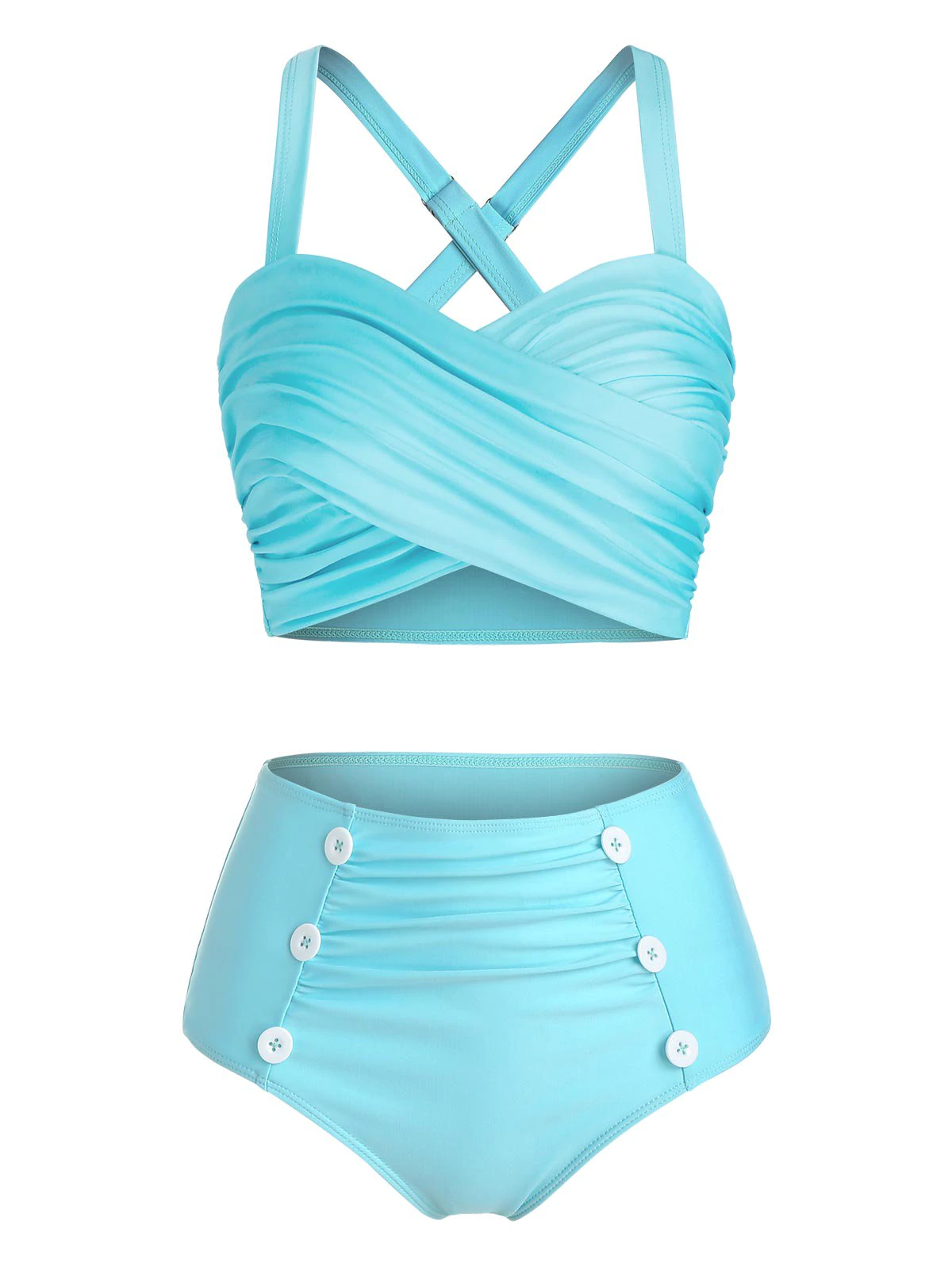 Crisscross Ruched Cross Back Padded Tankini Swimwear