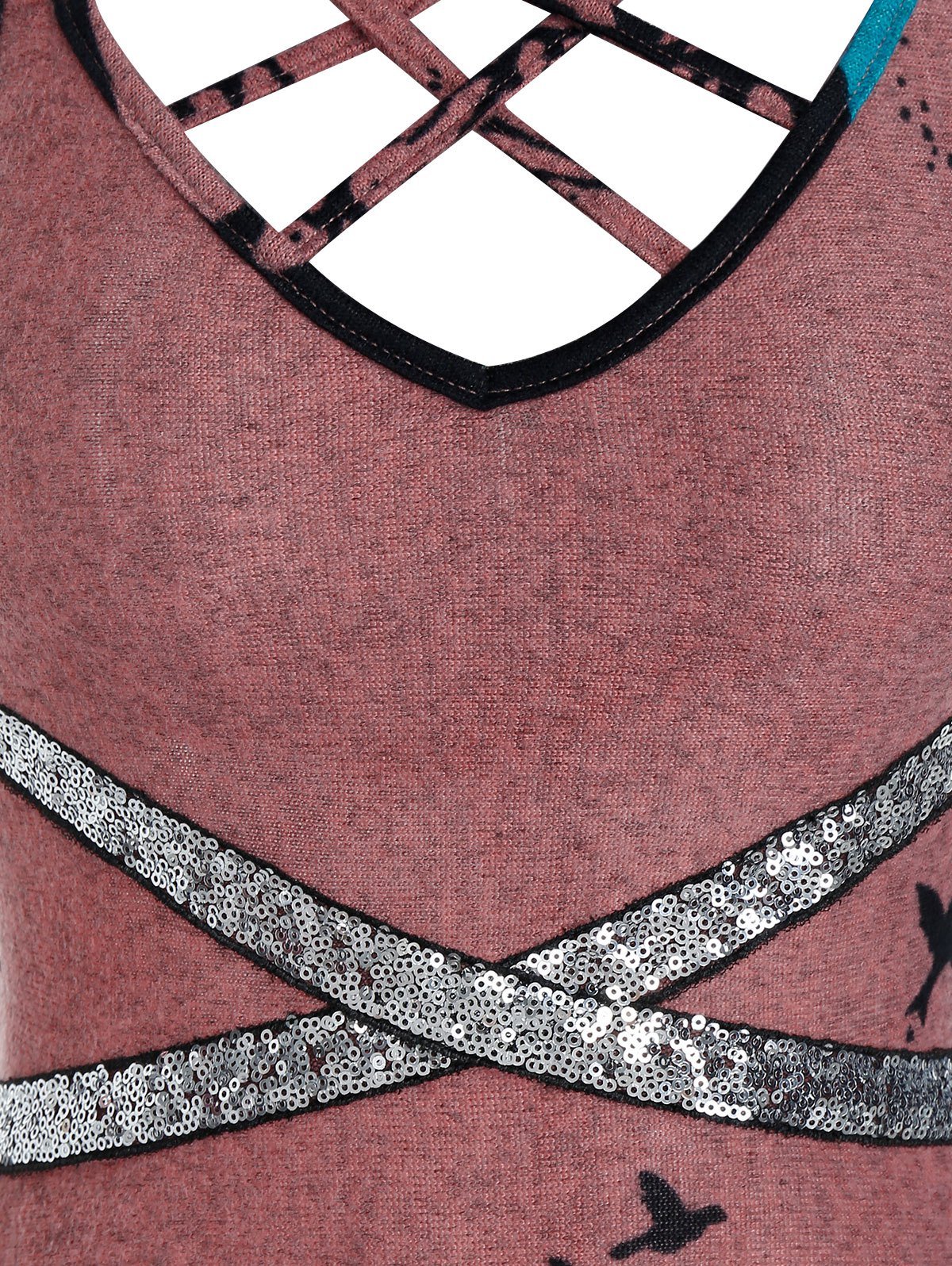 Crisscross Sequins Panel Tree Print Knee High Cami Dress