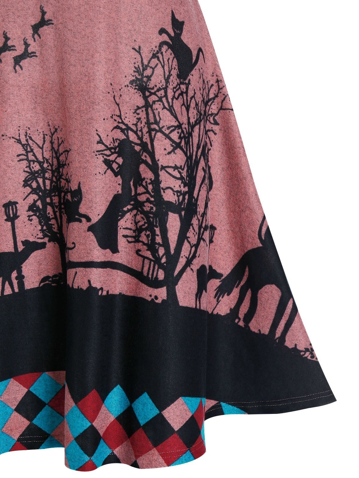 Plus Size Off The Shoulder Pumpkin Print Halloween Vintage Dress