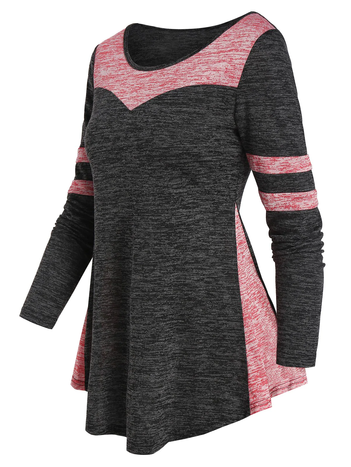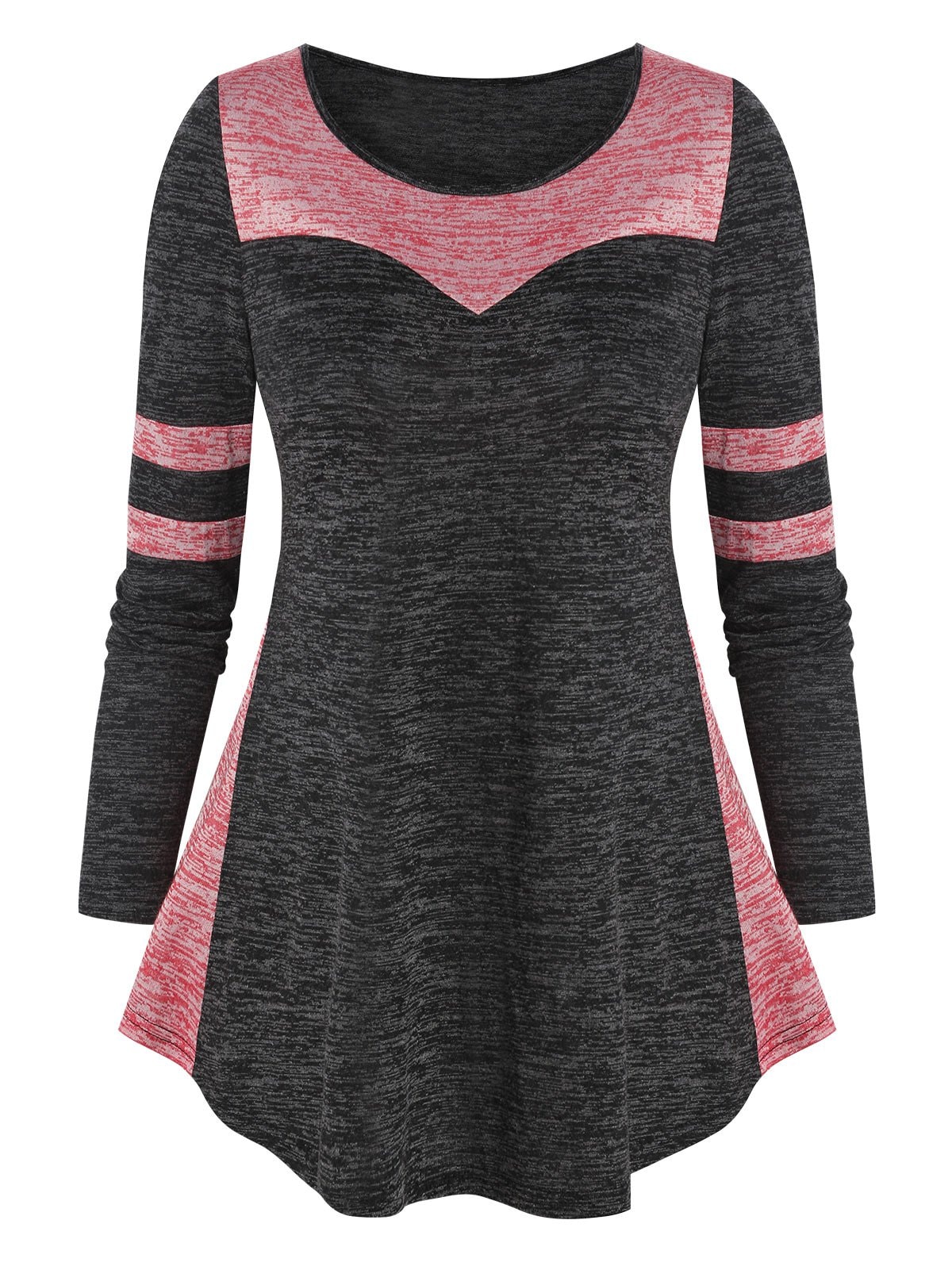 Curved Hem Contrast Heathered T-shirt
