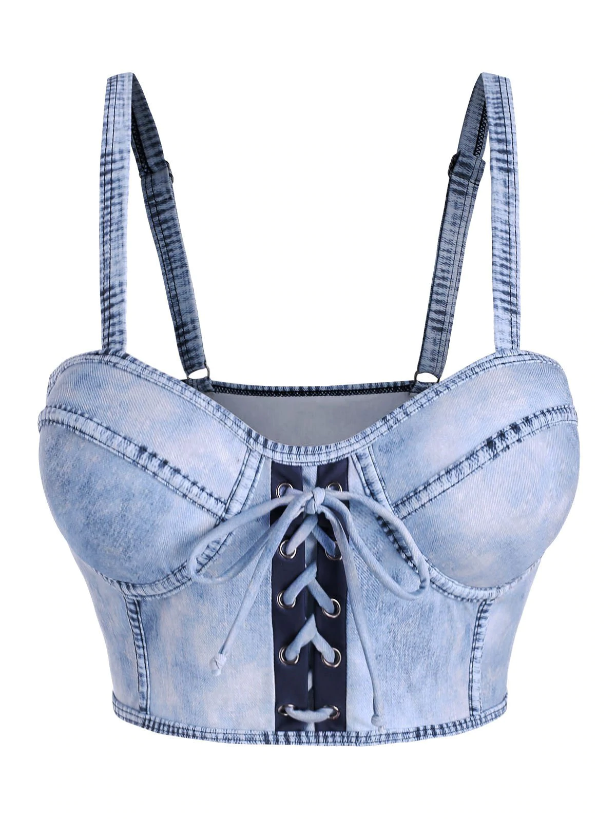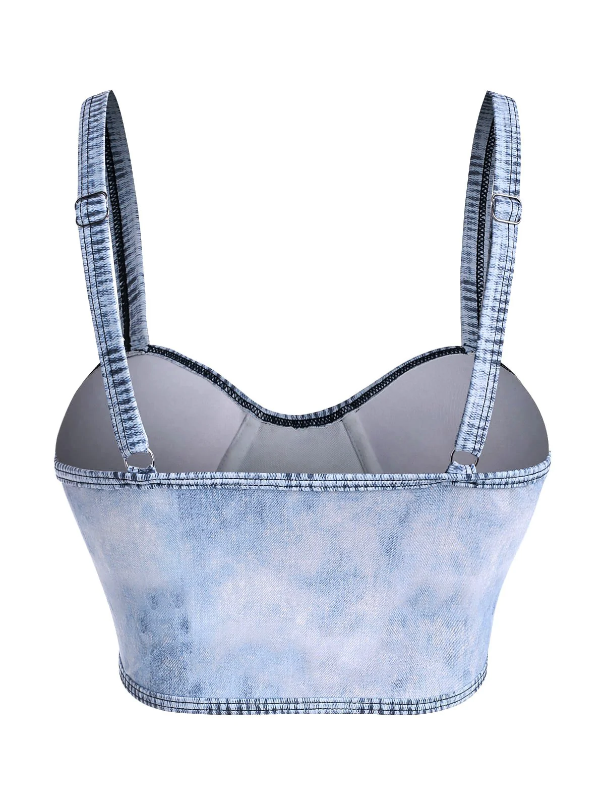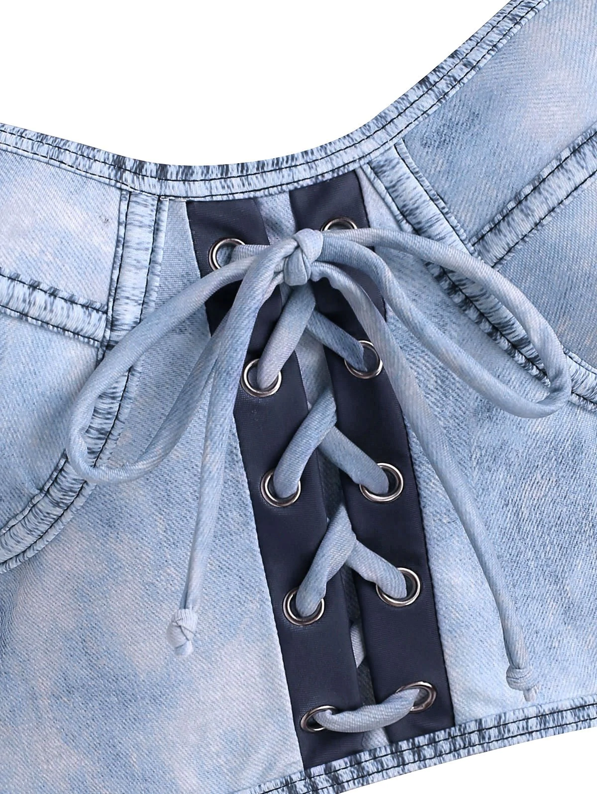 Denim Print Lace Up Moulded Swim Top