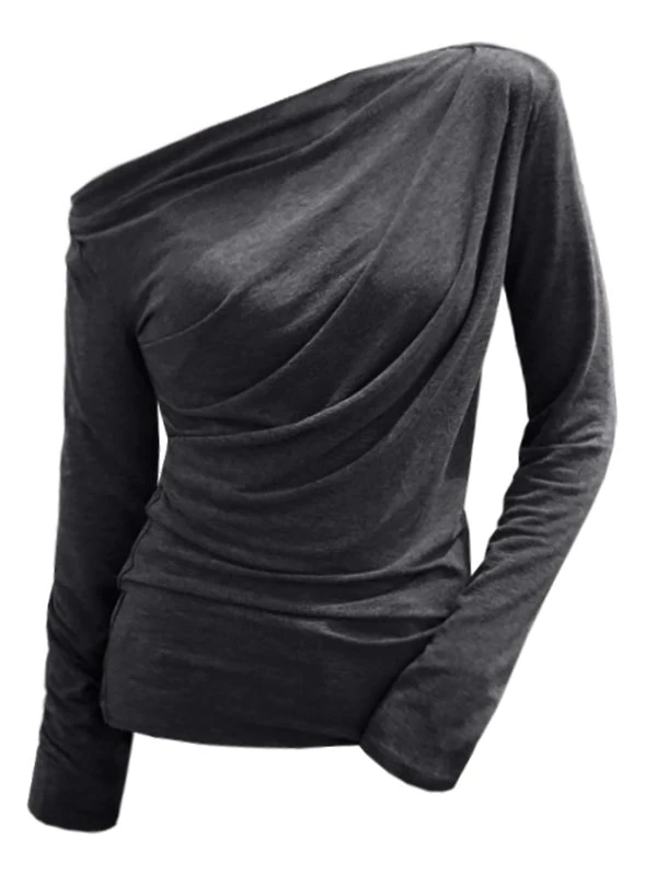 Draped Long Sleeve Heathered T-shirt