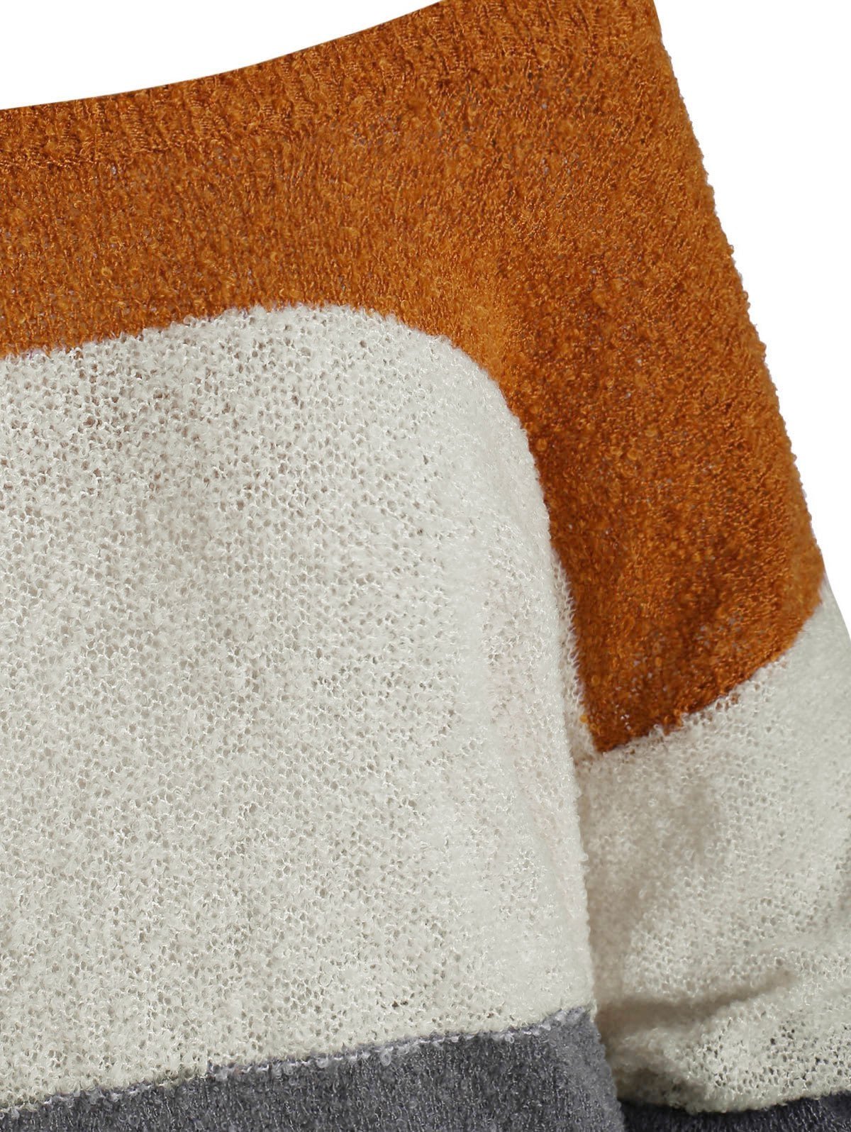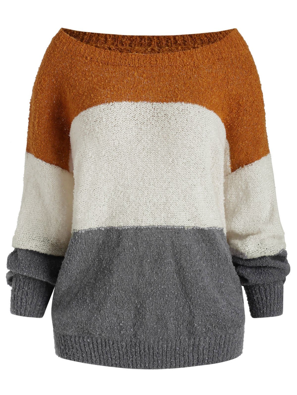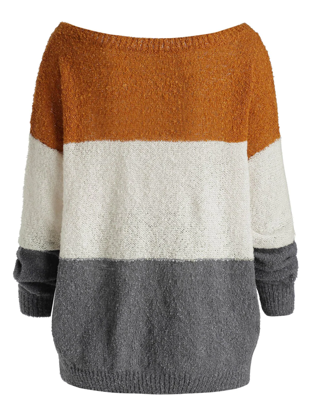 In a three-tone design, this jumper sweater differs from others in the wide scoop neck which can be worn as a skew neck for a more sexy charming look. Just pair with your fave jeans for a chic look!