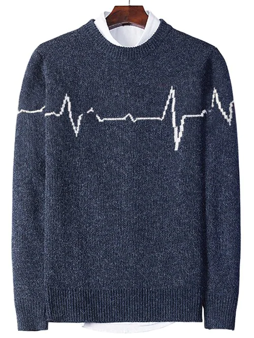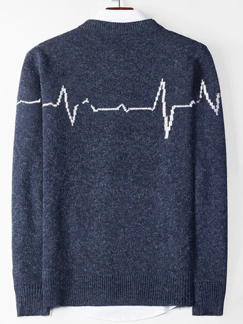 Electrocardiogram Pattern Pullover Knit Sweater