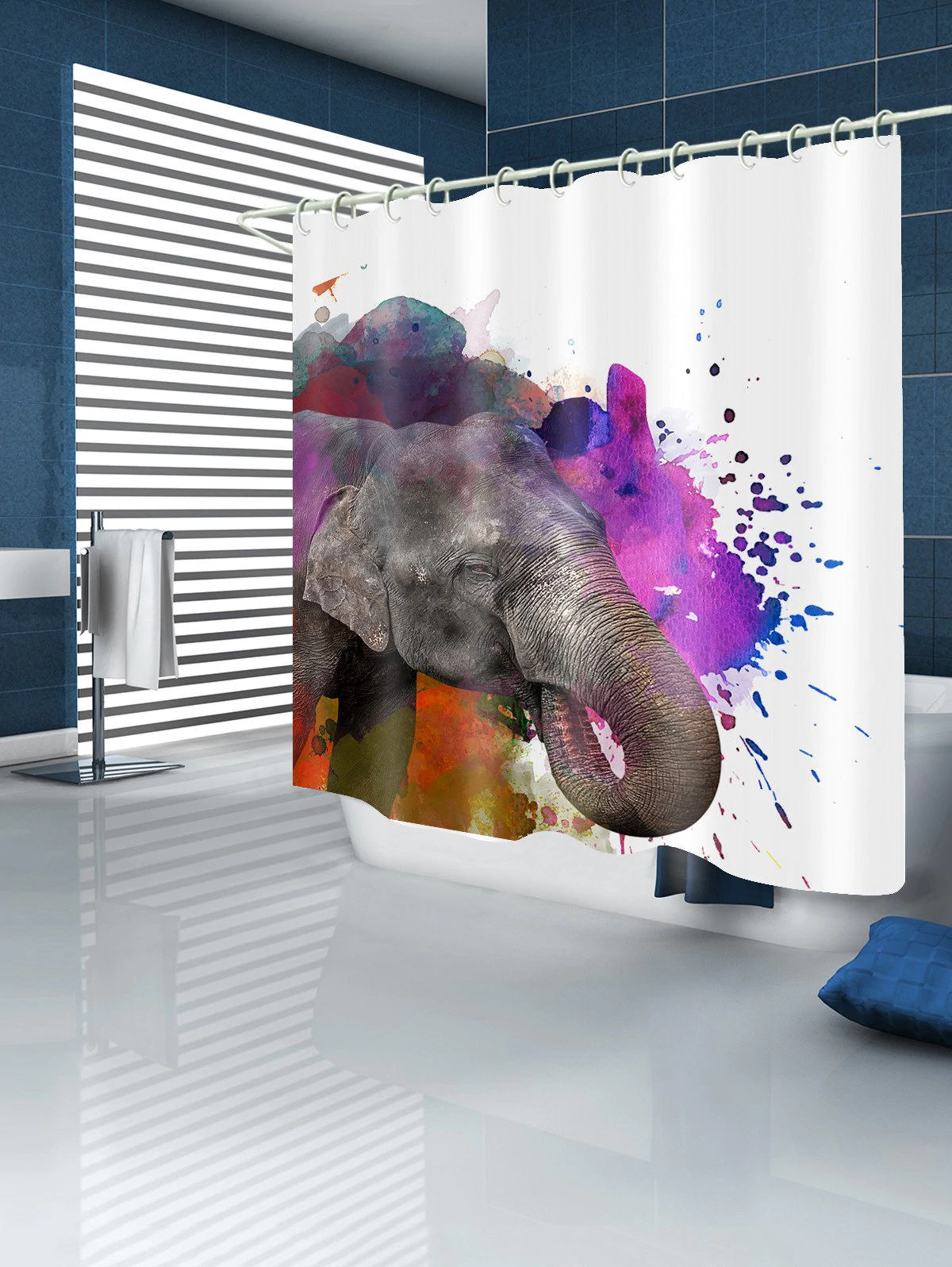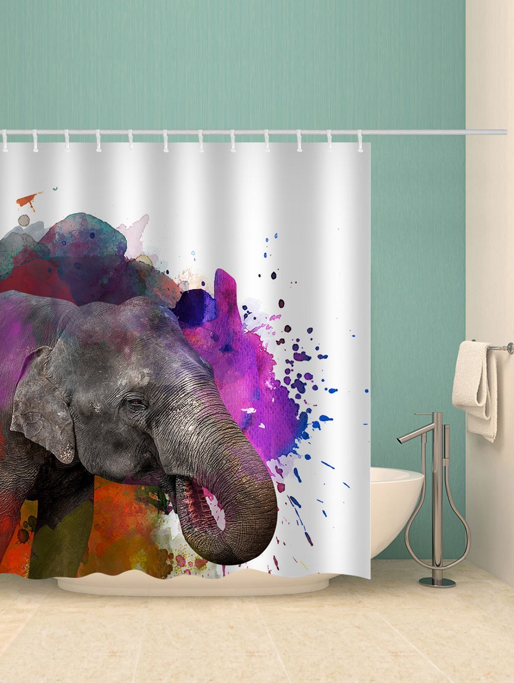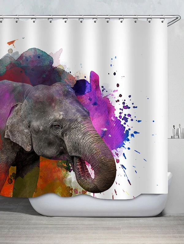Elephant Watercolor Print Waterproof Shower Curtain