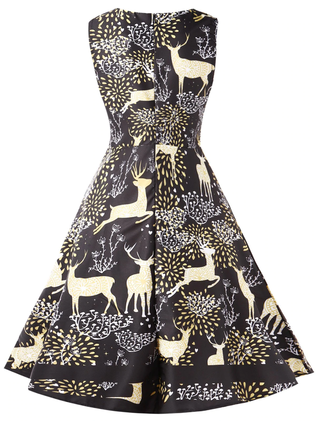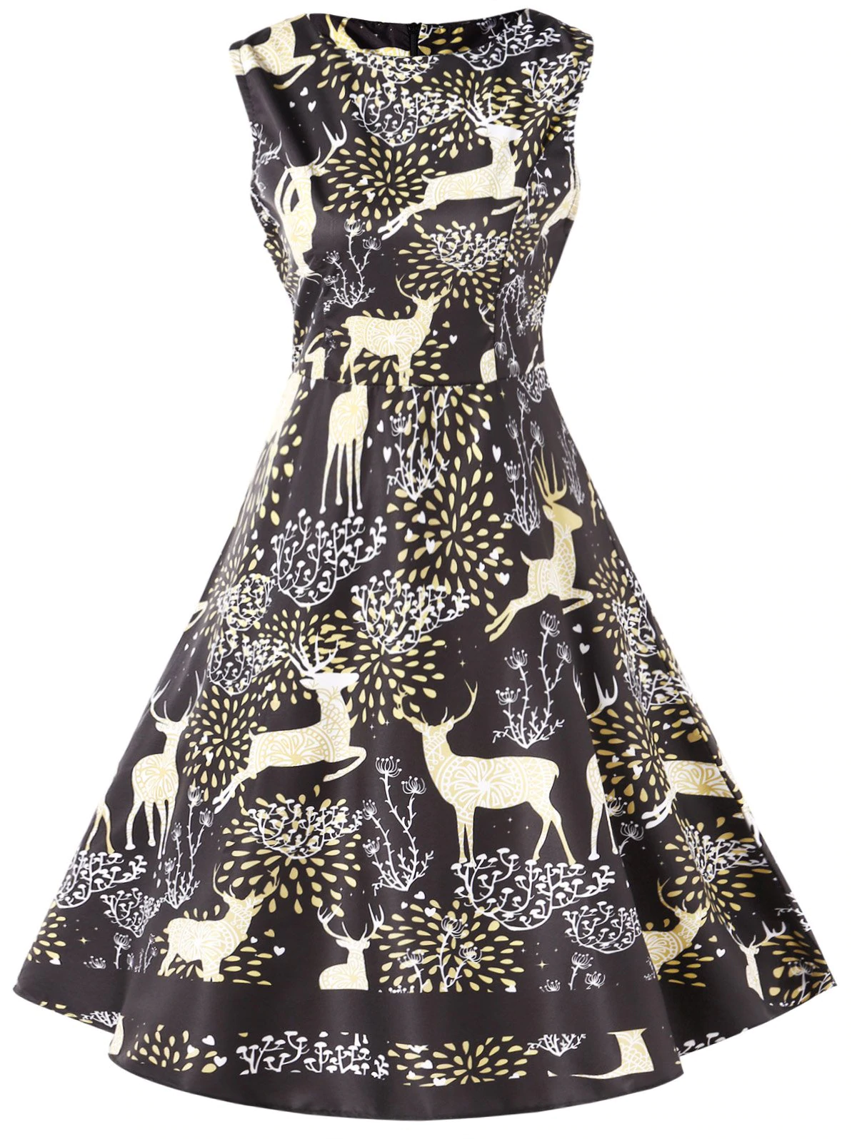 Elk Print Vintage Christmas Dress