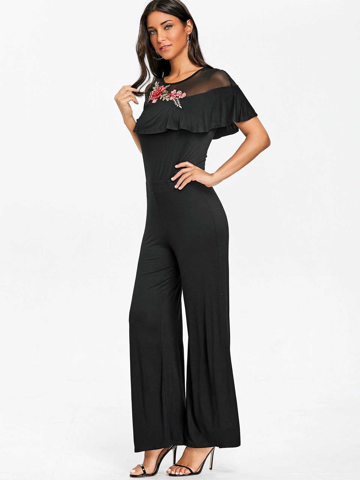 Embroidery Mesh Insert Palazzo Jumpsuit