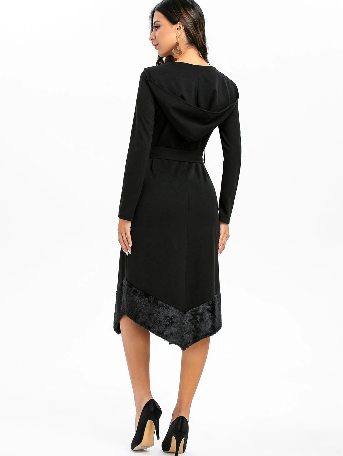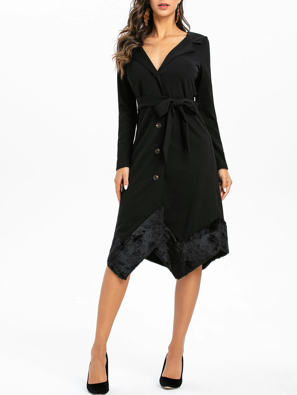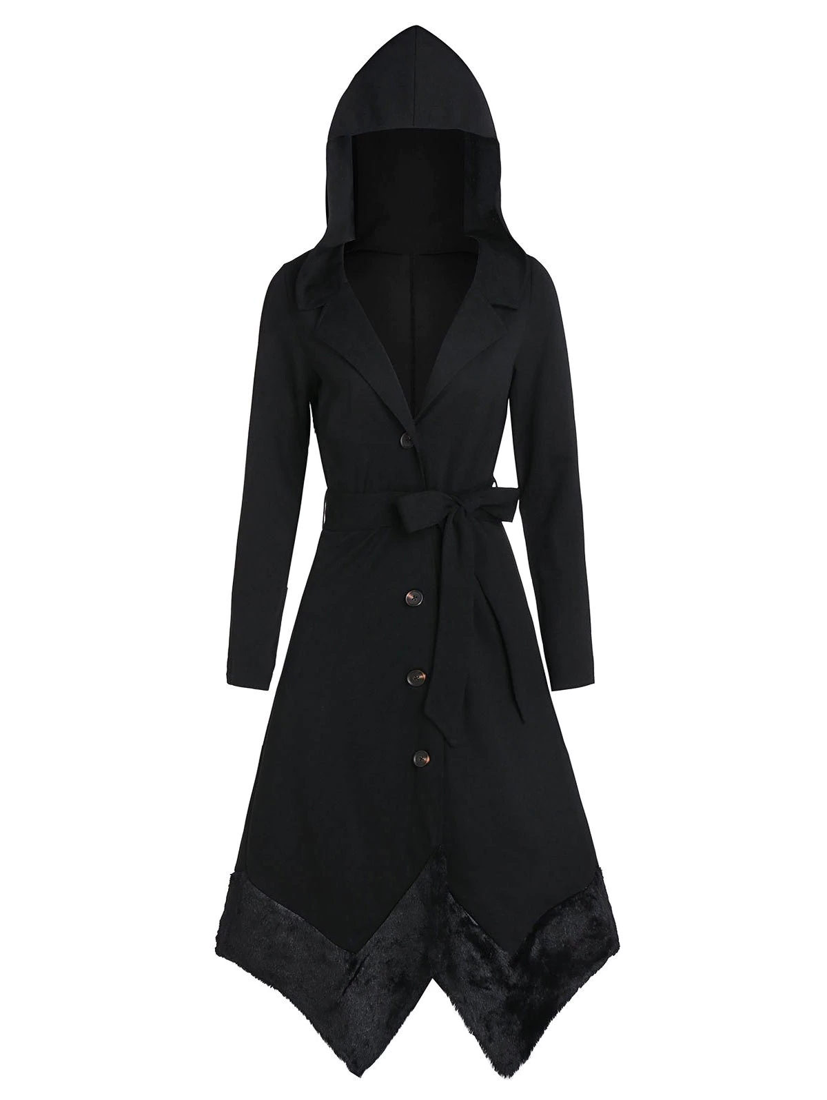 Faux Fur Panel Asymmetrical Solid Coat