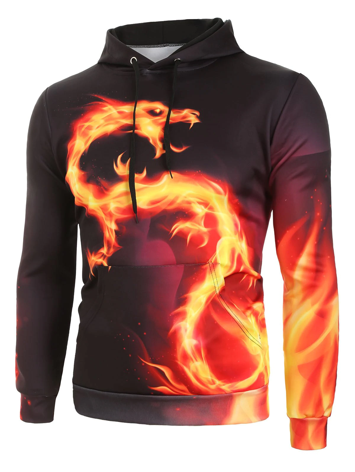 Fire Dragon Graphic Front Pocket Casual Hoodie