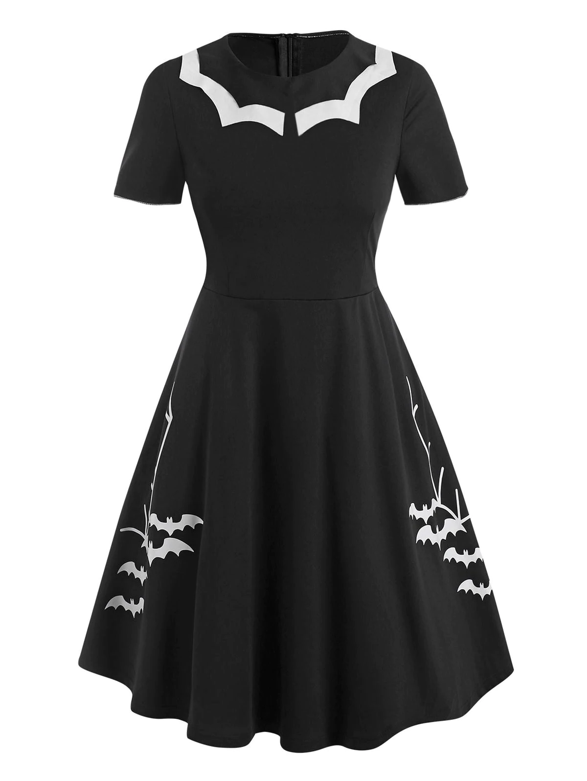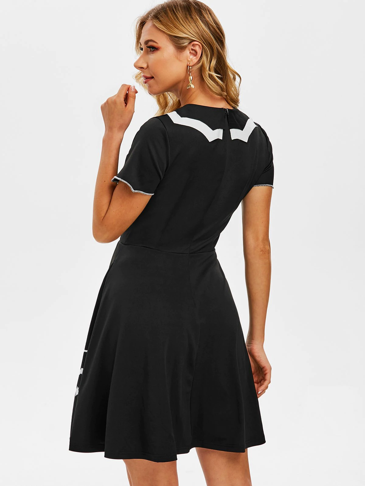 Flat Collar Halloween Bat Print Side Pocket Dress